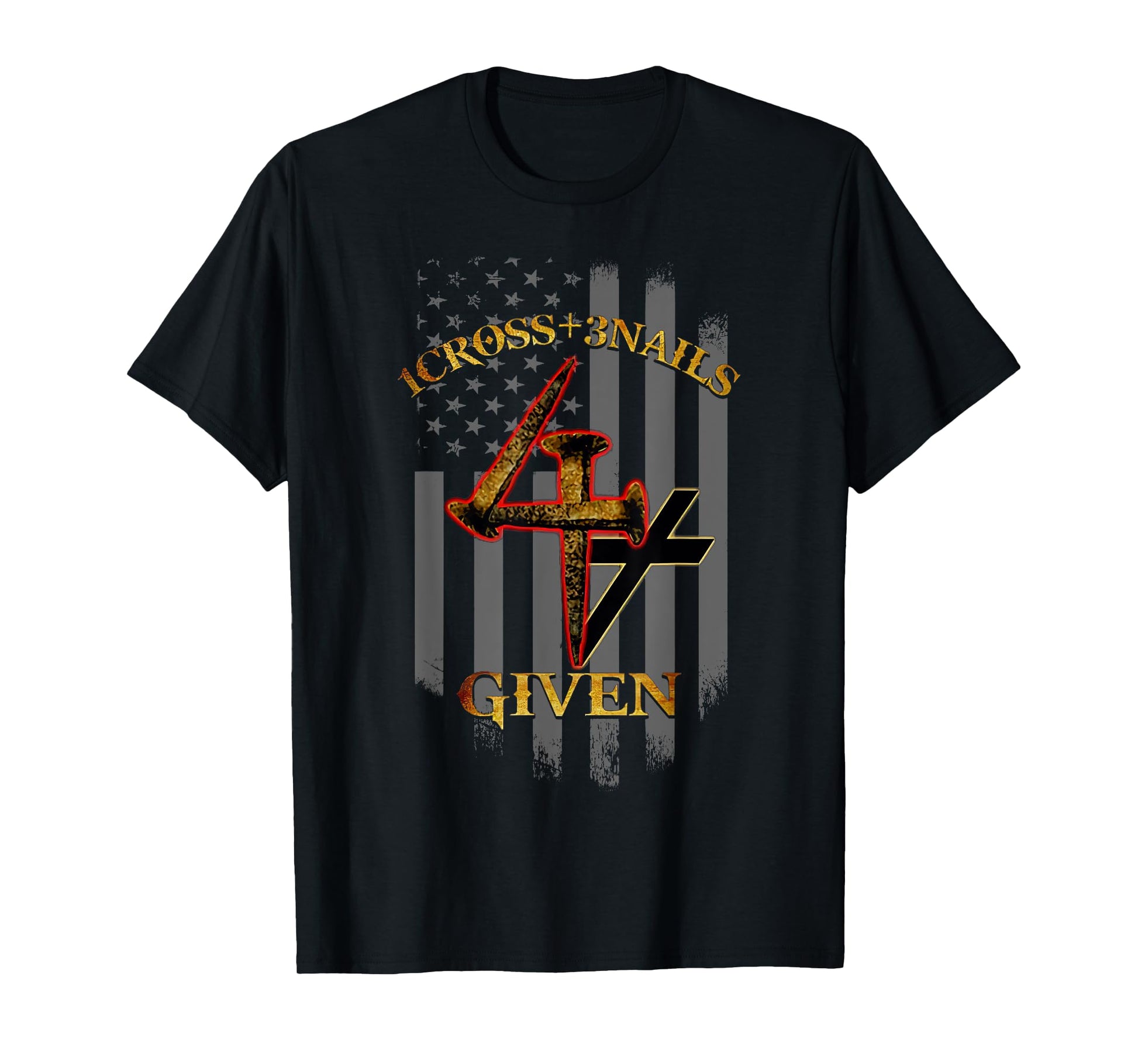 1 Cross + 3 Nails = 4 Given Christian US Flag T-Shirt