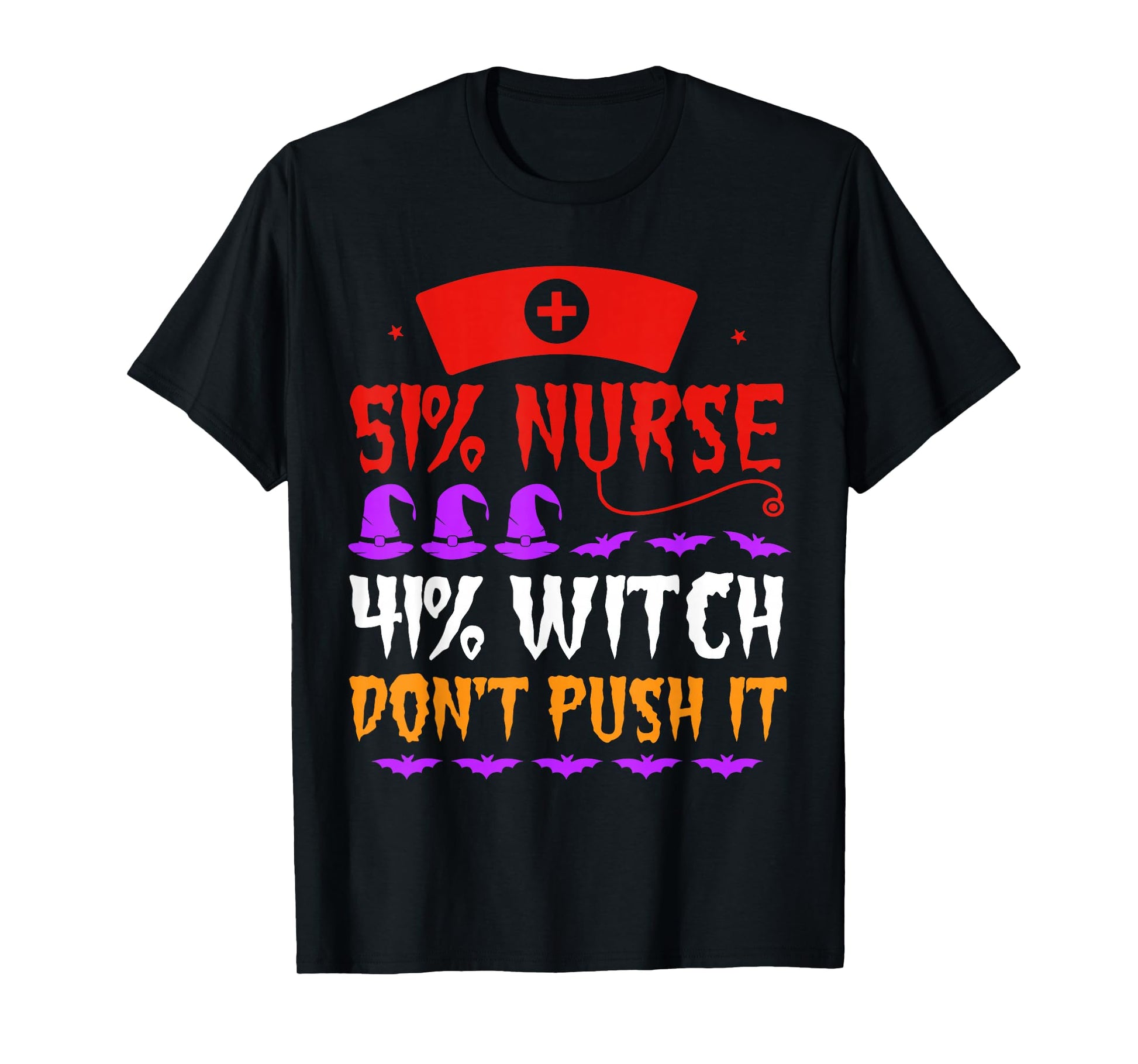 51% Nurse 49% Witch Don't Push It Nurse Witch Hat Halloween T-Shirt