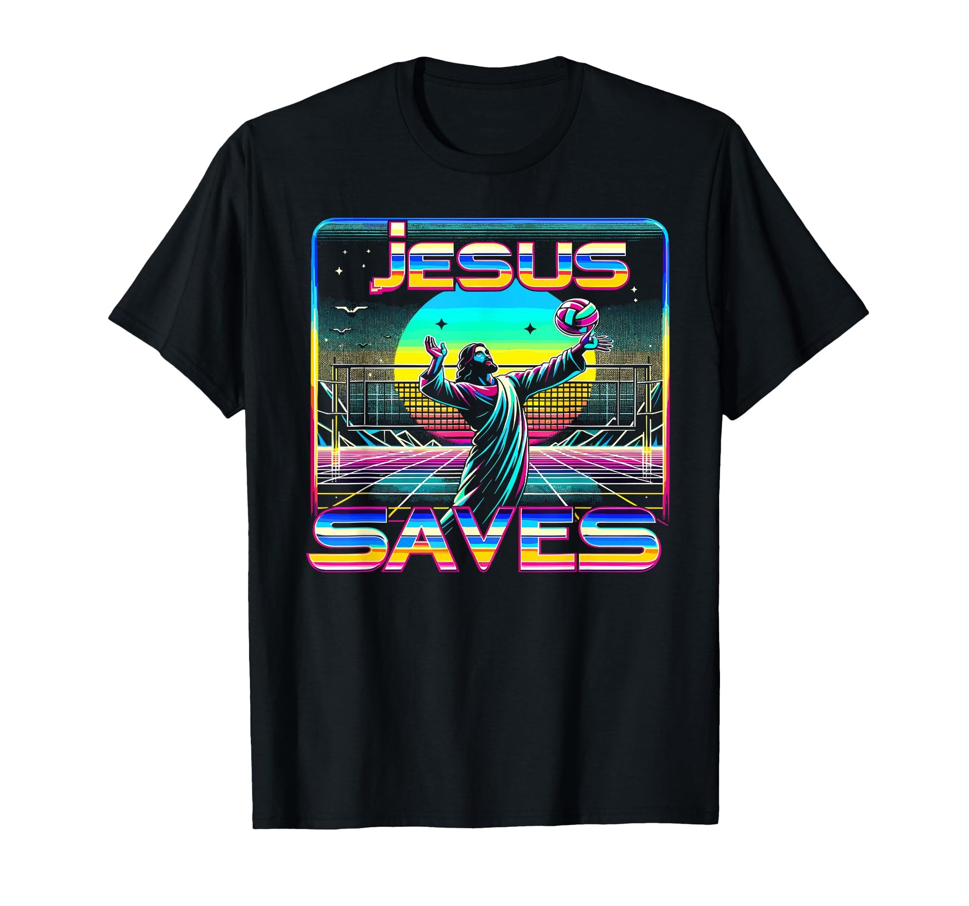 80s Vaporwave Jesus Saves Volleyball T-Shirt