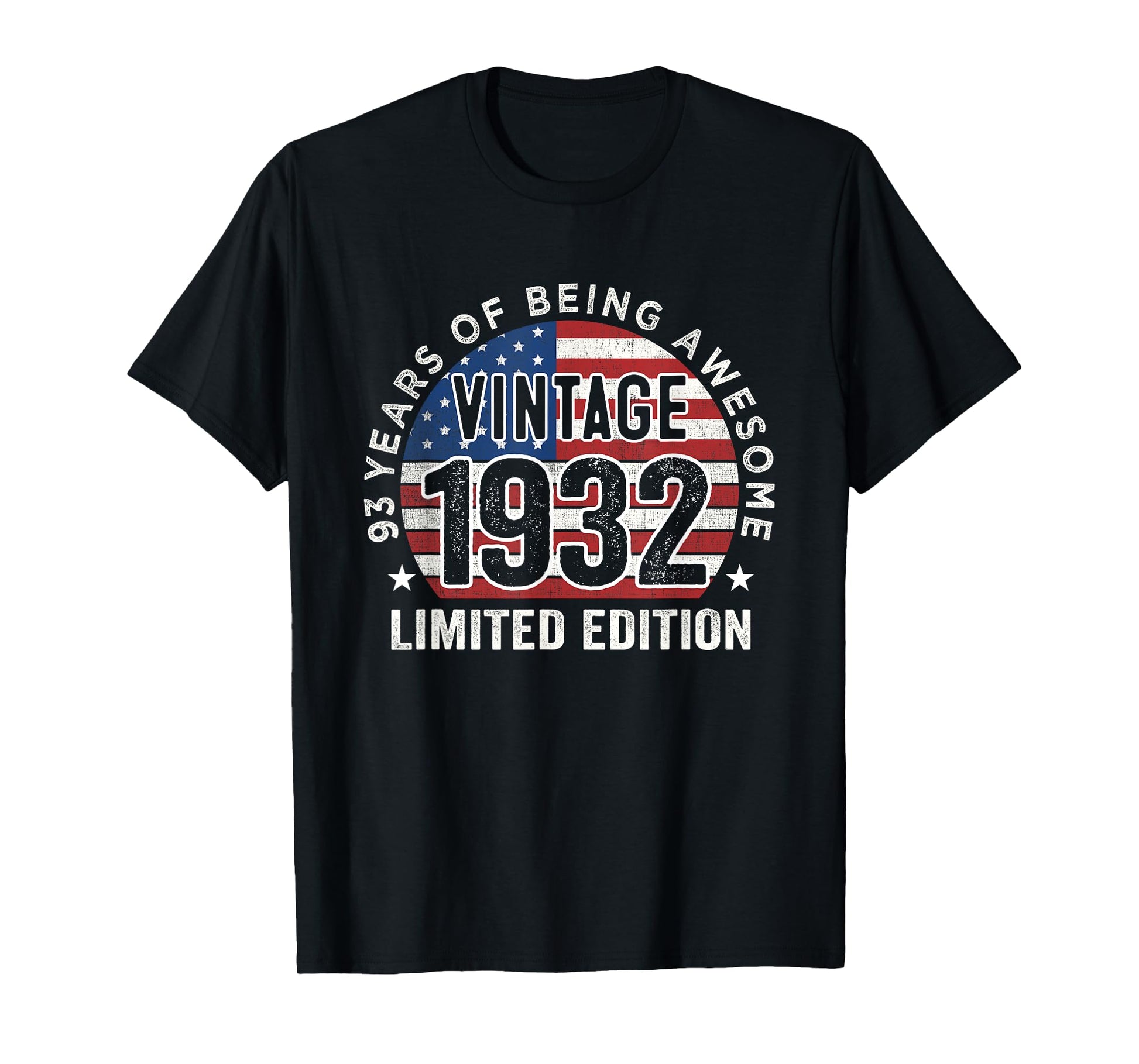 93rd Birthday Gifts Men Vintage 1932 93 Years Old USA Flag T-Shirt