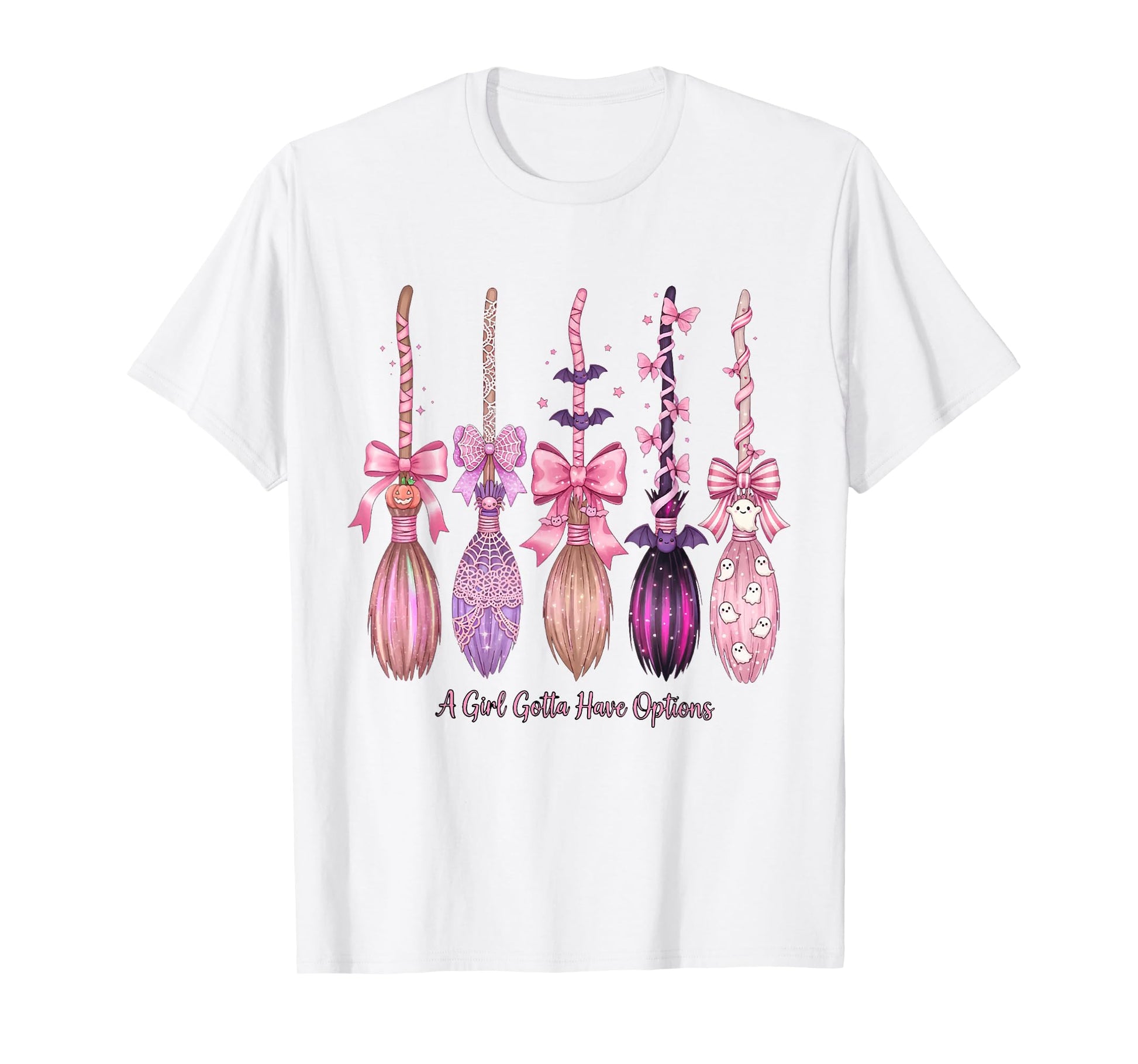 A Girl Gotta Have Options Pink Witch Brooms Halloween Girly T-Shirt