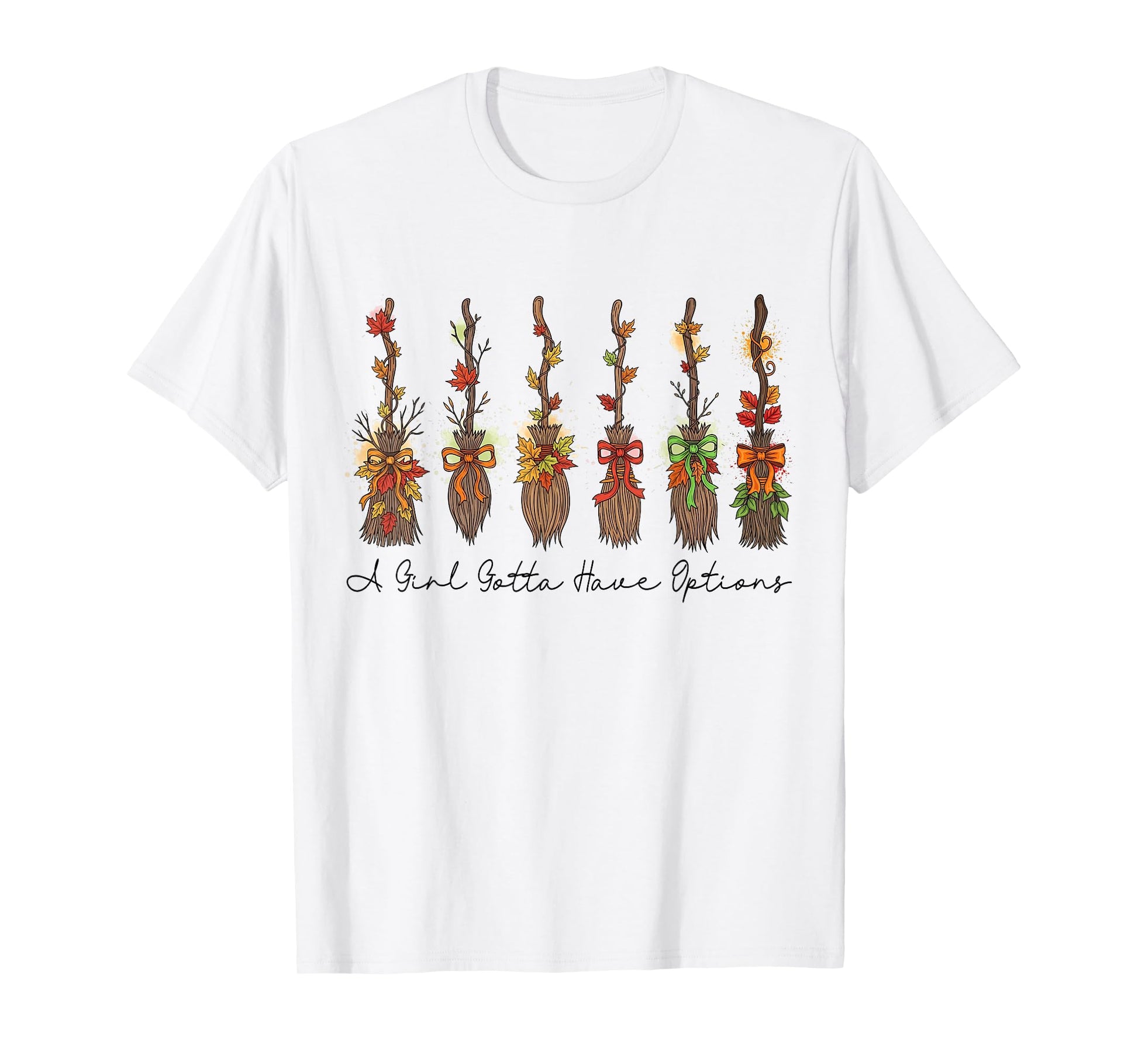 A Girl Gotta Have Options Spooky Halloween Brooms Witchy T-Shirt