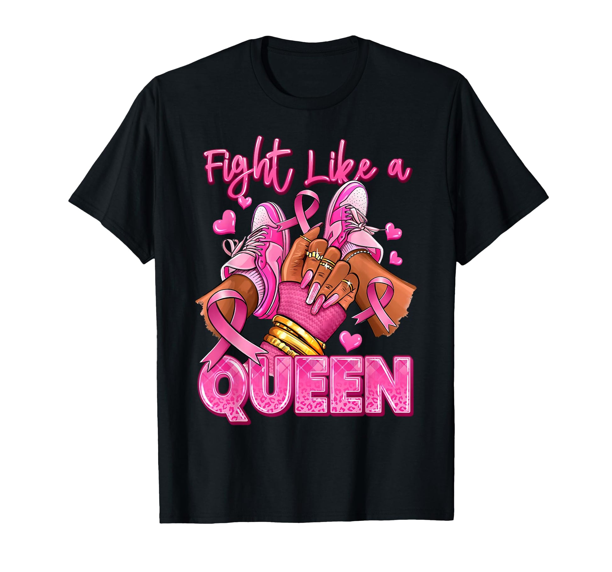 Afro Queen Black Women Breast Cancer Survivor Pink Ribbon T-Shirt