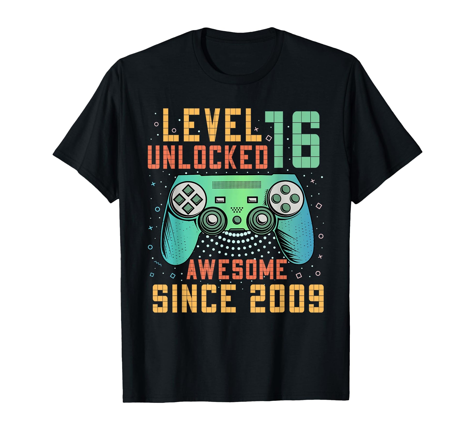 Awesome Since 2009 16 Birthday Boy Gamer Gifts Level 16 Unlocked 16th Birthday T-Shirt Black Unisex Kids Boys Gaming Retro Controller Design Classic Fit Short Sleeve T-Shirt