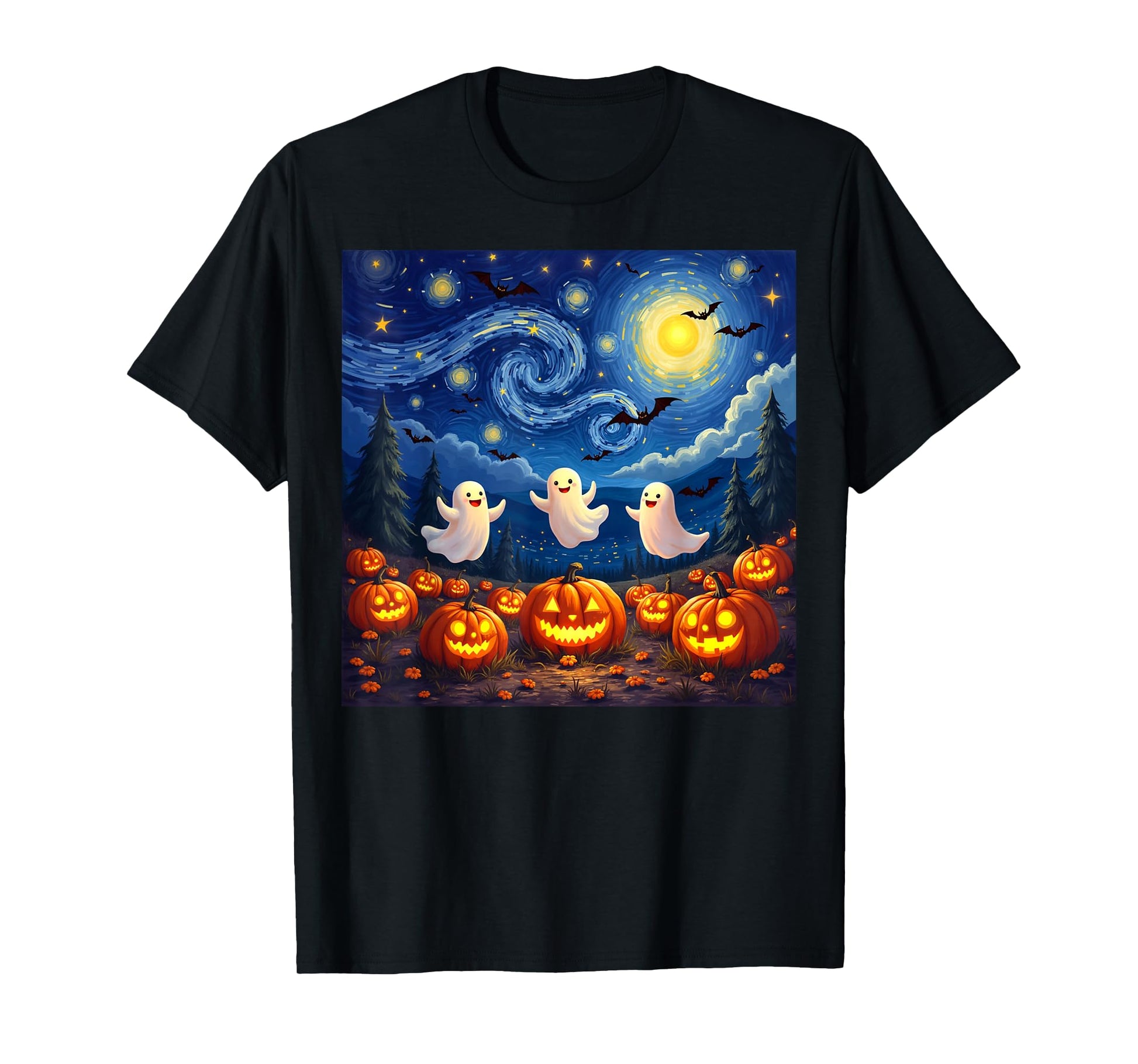 boo ghost halloween pumpkin Starry Night Van Gogh men women T-Shirt