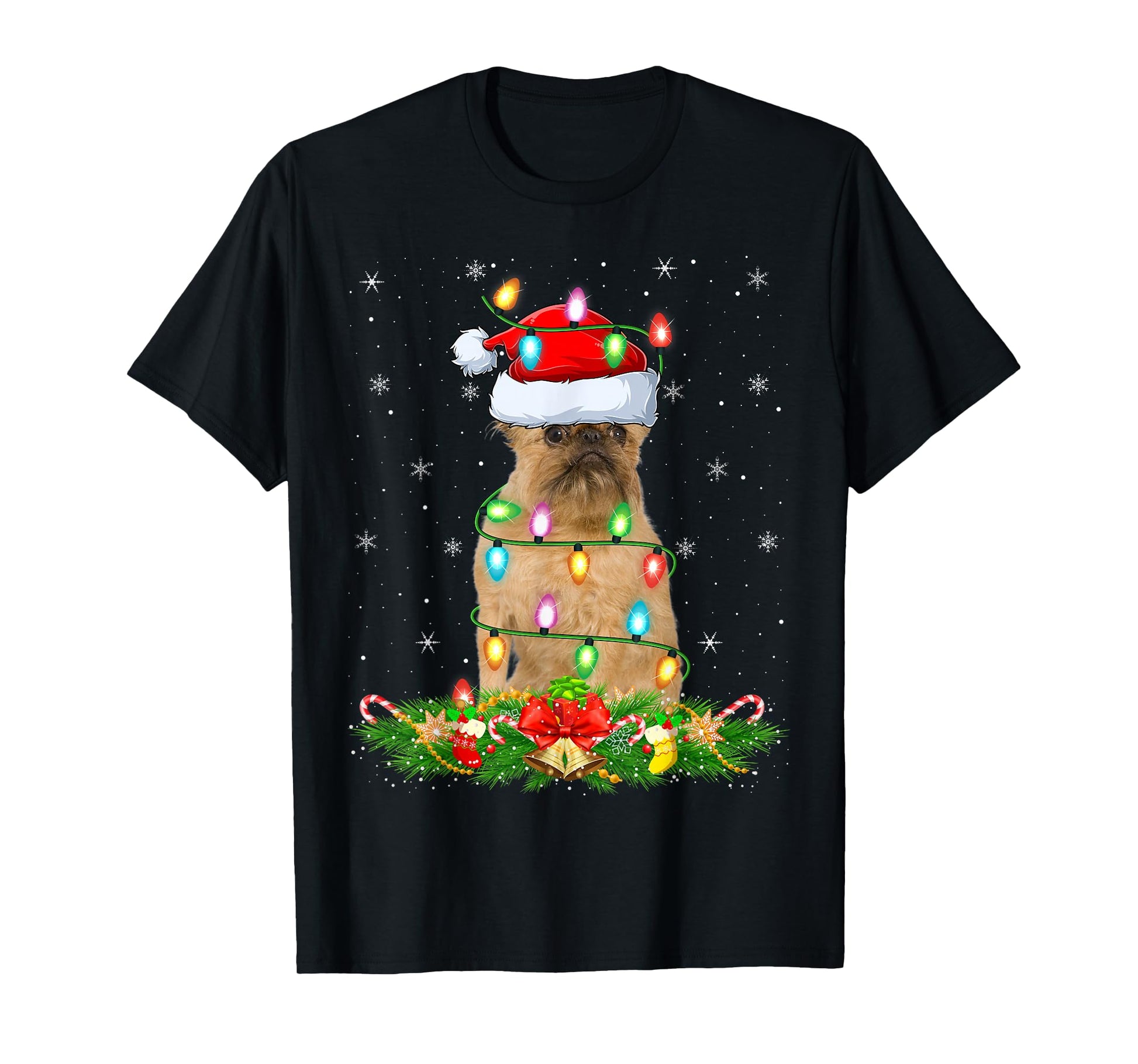 Brussels Griffon Dog Christmas Lights Funny Santa Hat Xmas T-Shirt