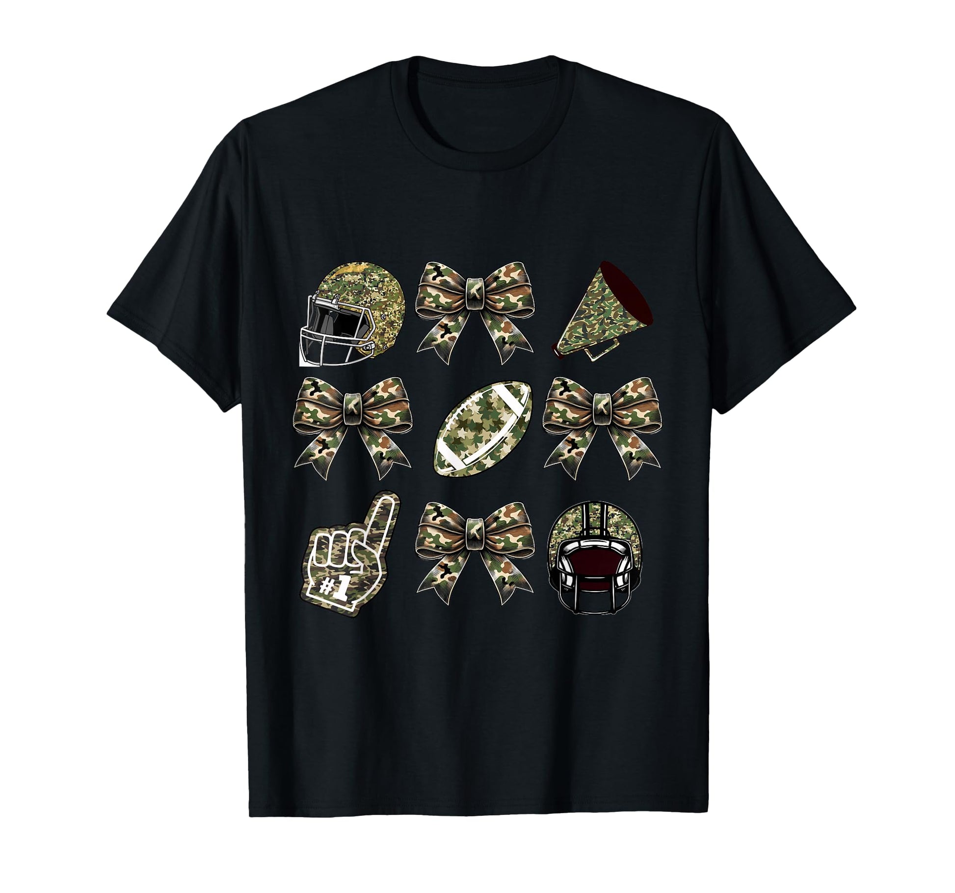 Camo Football Coquette Bow Football Mom Game Day Girls Women T-Shirt