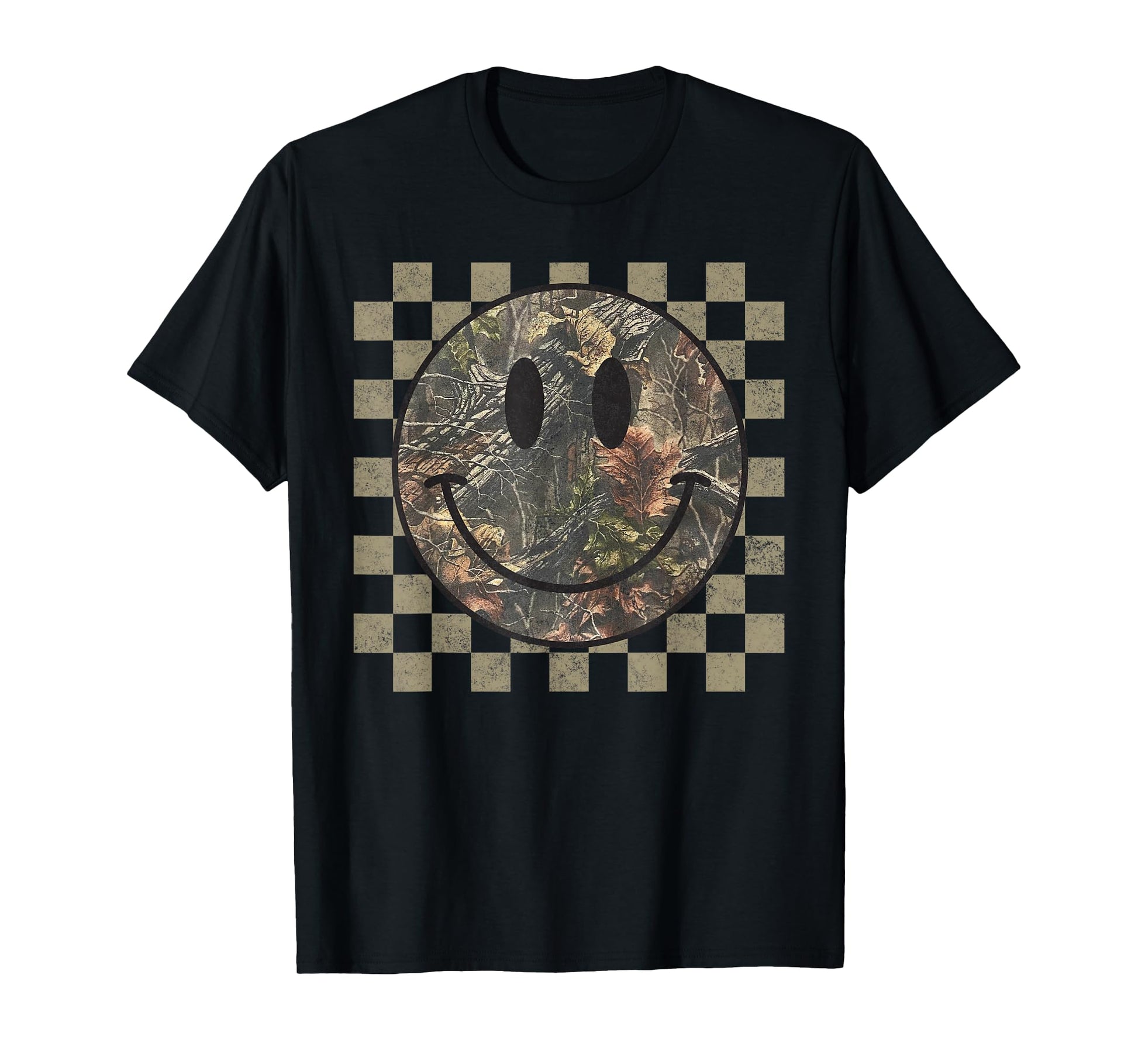 Camo Tree Smile Face Checkered Camouflage Cute Adults Kids T-Shirt