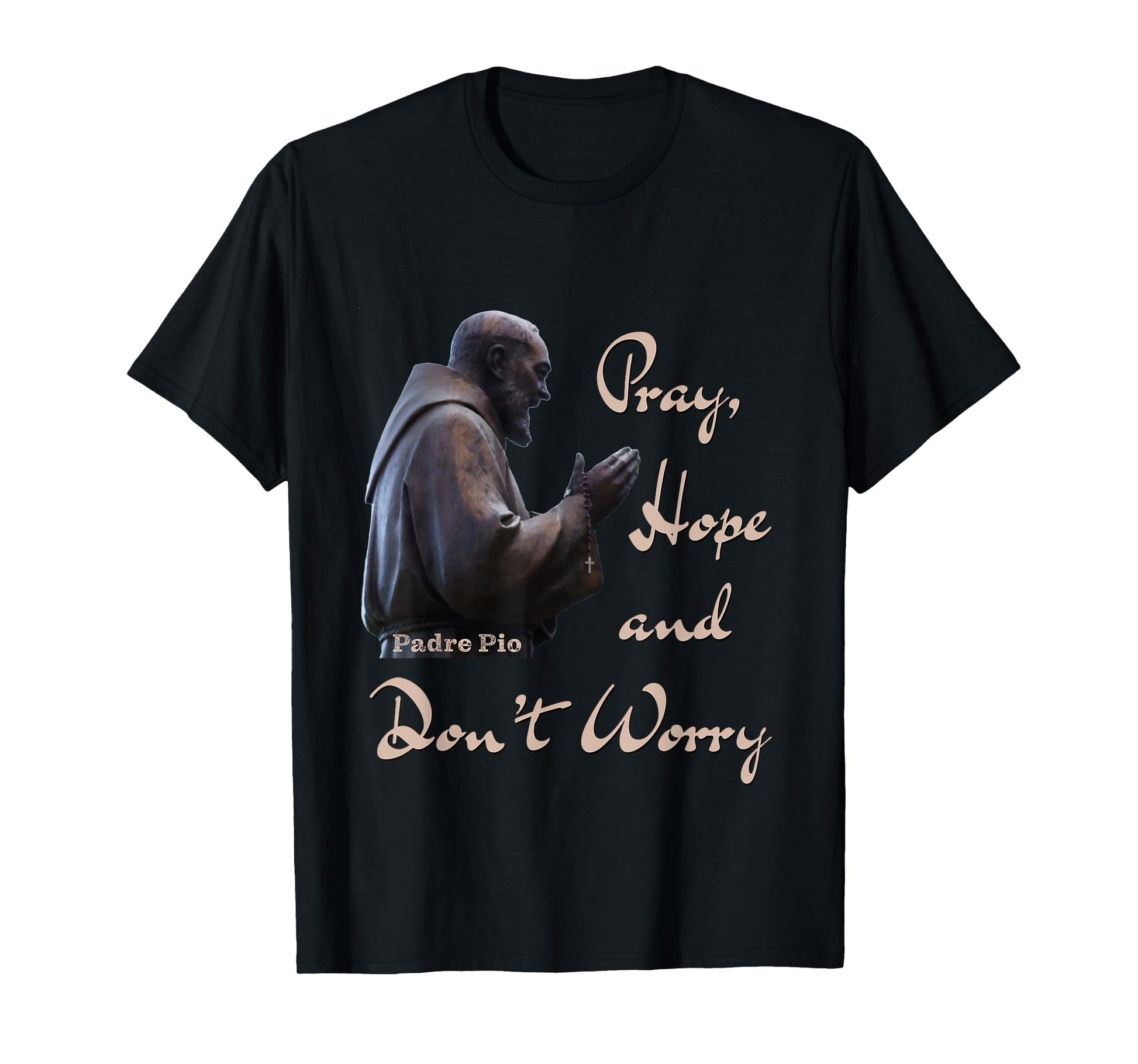 Catholic Saint Padre Pio Quote Pray, Hope, and Don't Worry. T-Shirt