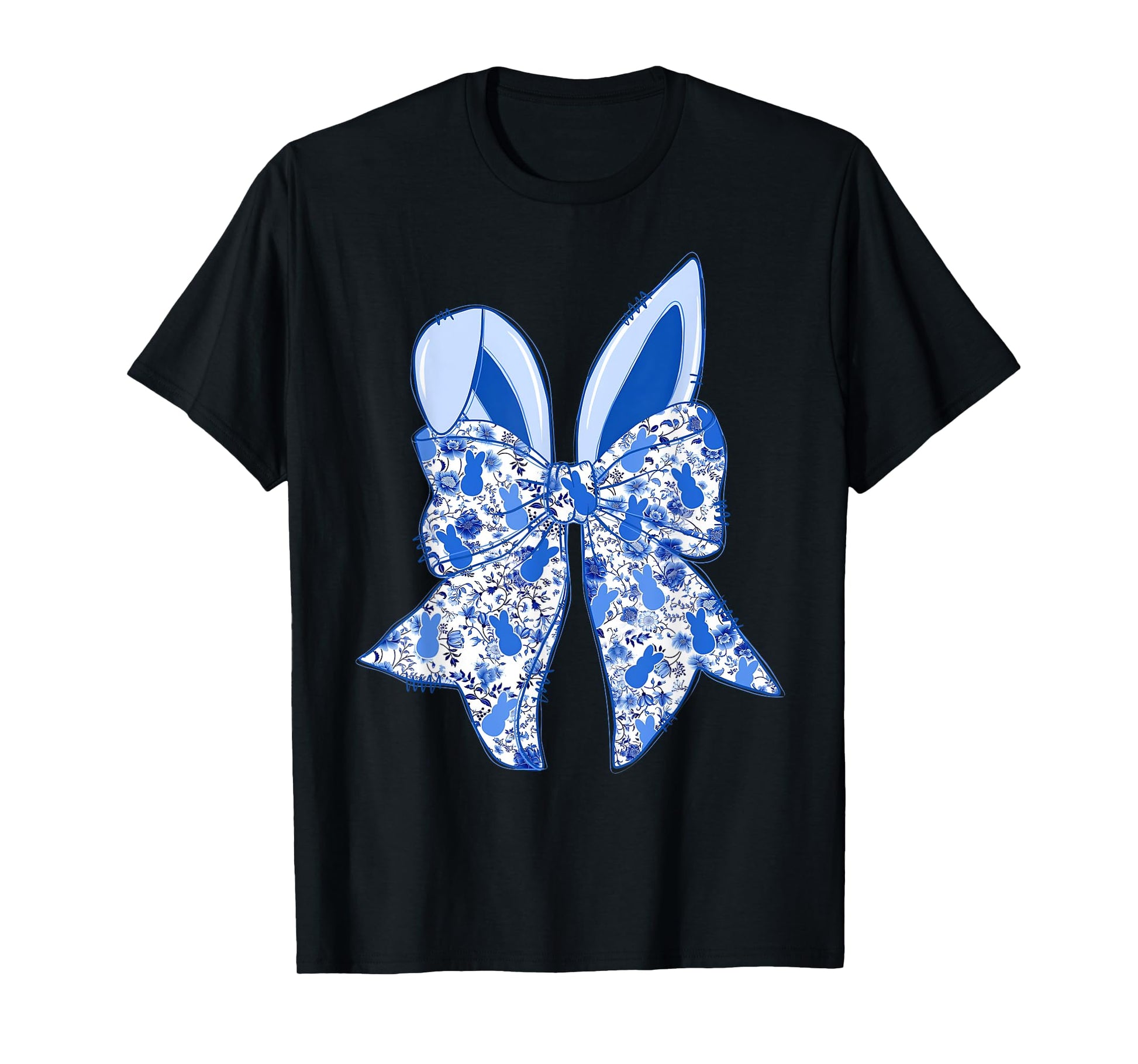 Chinoiserie Bunny Rabbit Vintage Blue And White Happy Easter T-Shirt