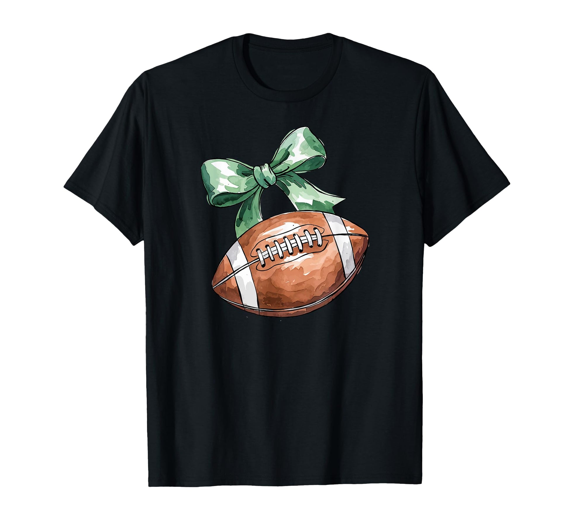 Coquette Football with Green Bow, Cute Team Spirit Sports T-Shirt