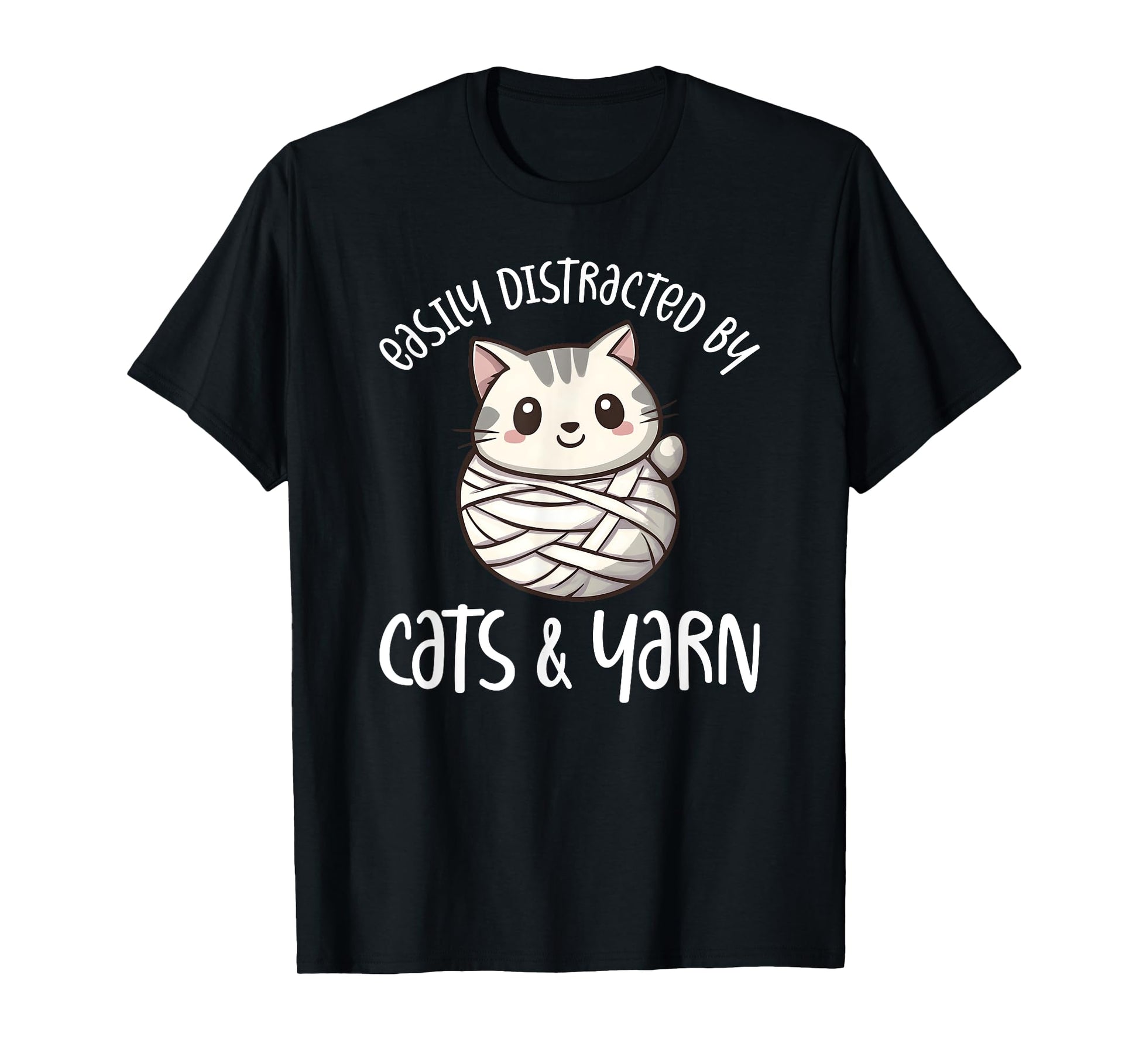 Easily Distracted By Cats And Yarn, Kitten Lover Crochet T-Shirt