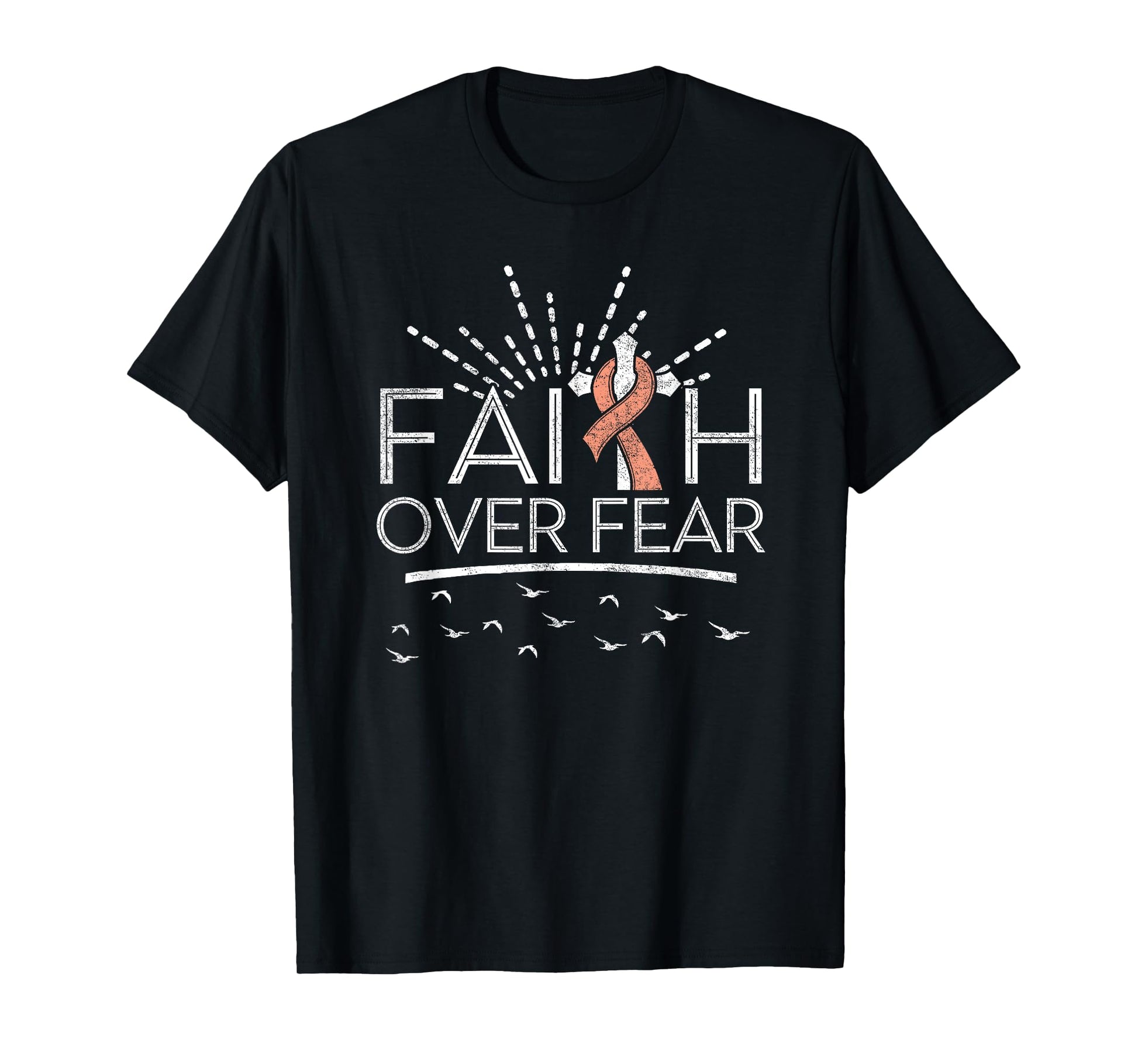 Faith over Fear Peach Ribbon Uterine Cancer T-Shirt