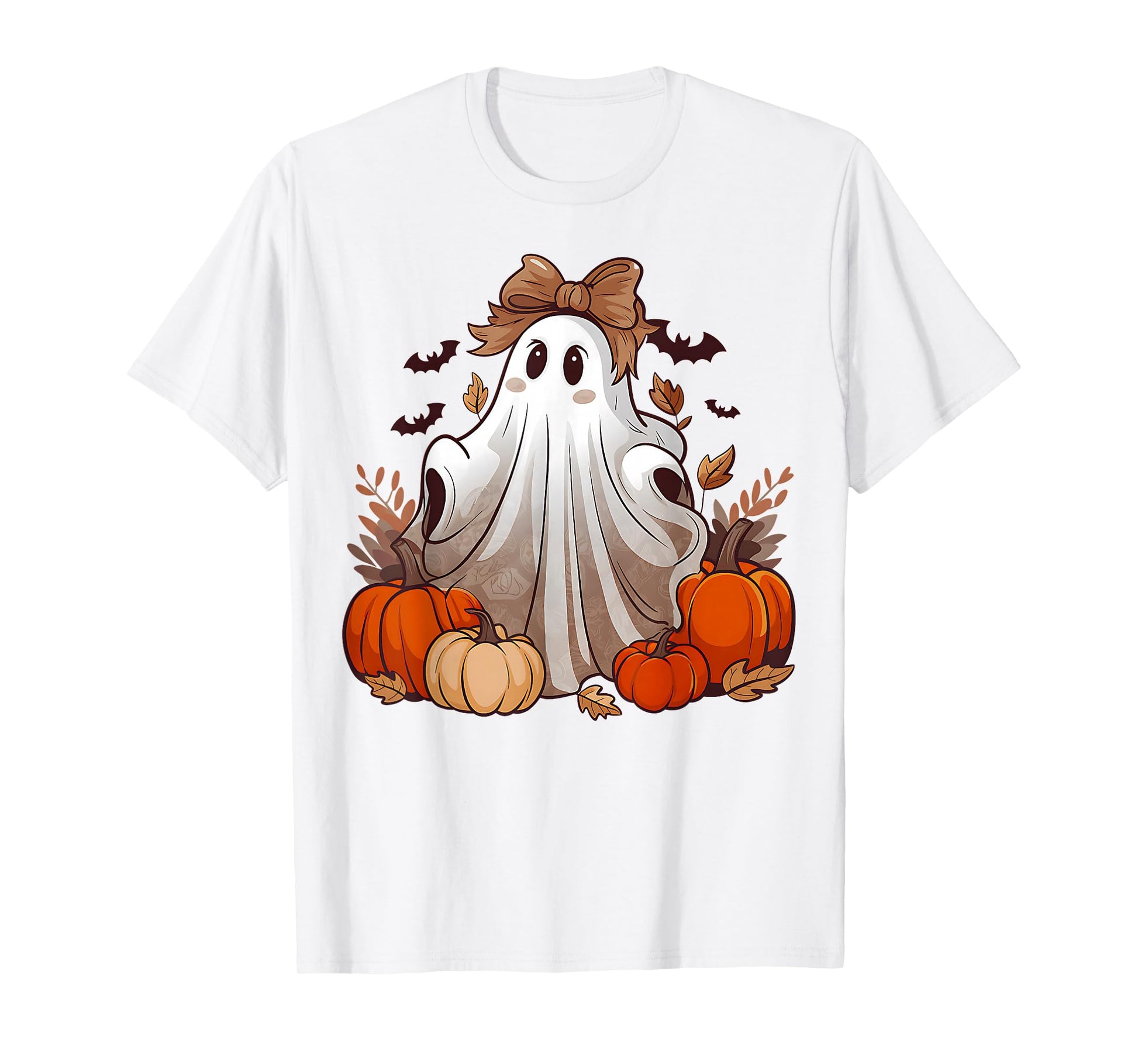 Fall Pumpkin Bowtie Ghost Halloween Costume Boo Girls Women T-Shirt