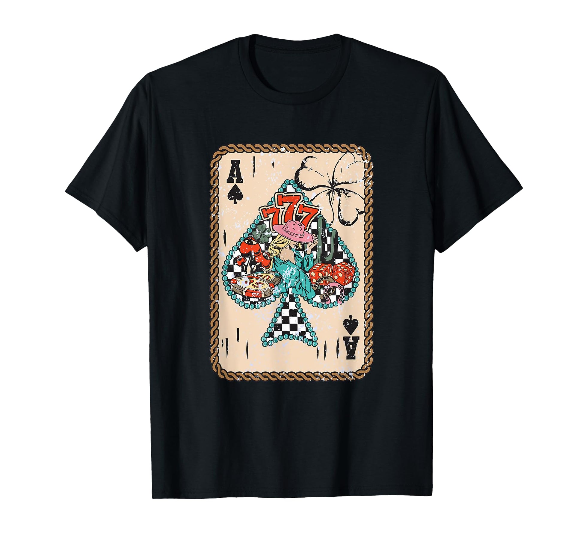 Feeling Lucky Turquoise Frame Trendy Country Retro Western T-Shirt