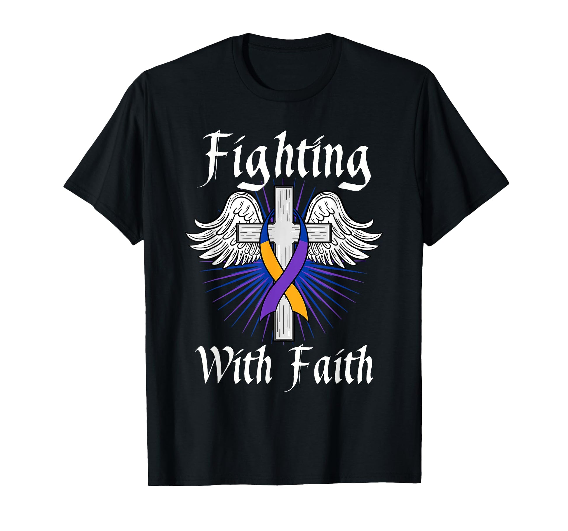 Fighting Faith Bladder Cancer Purple Blue And Yellow Dysuria T-Shirt