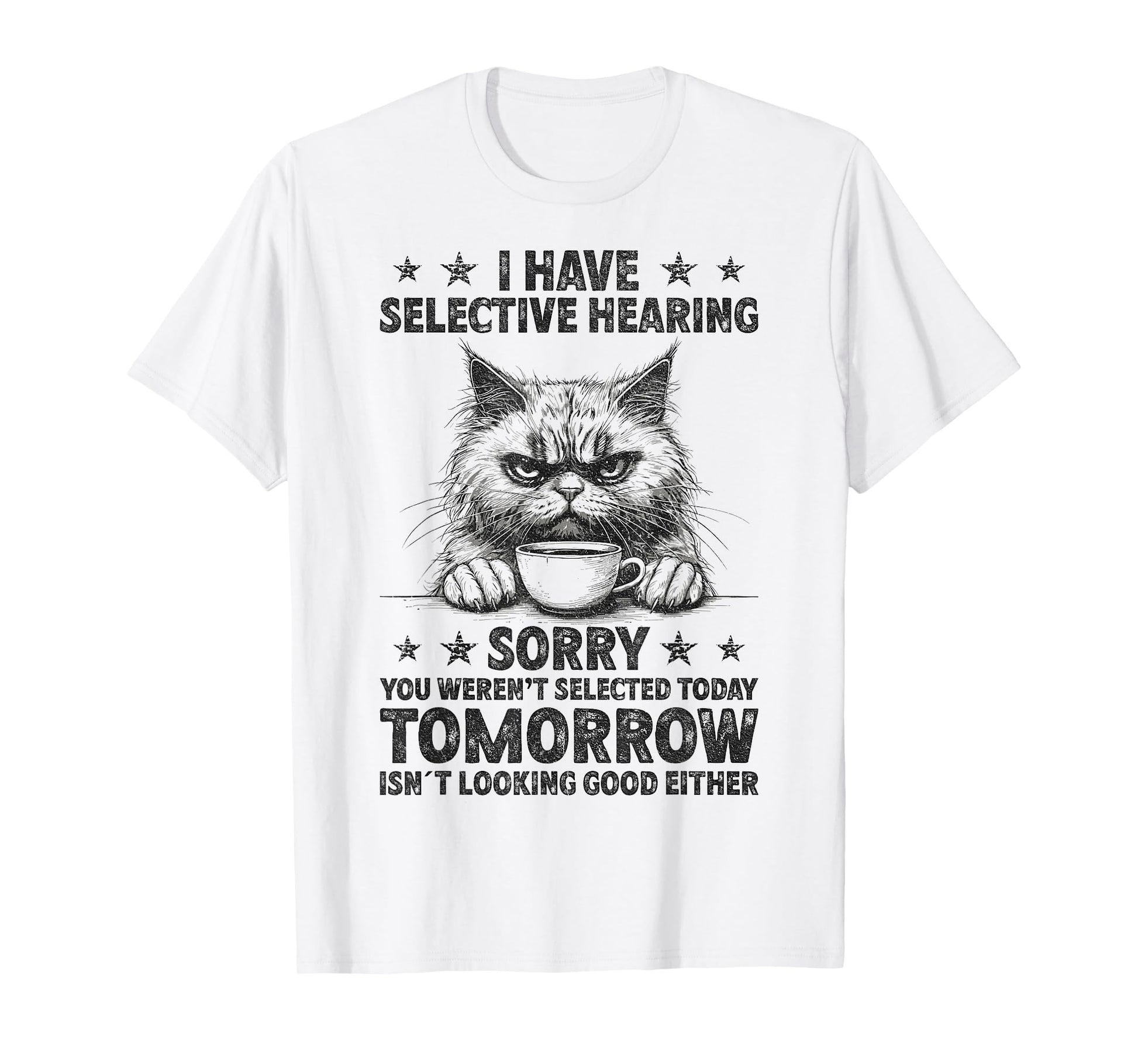 Funny I Have Selective Hearing You Werent Selected Cat Humor T-Shirt for Men Women