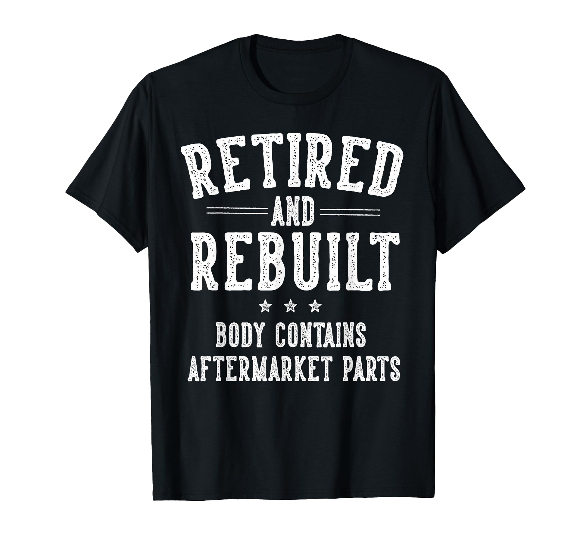 Funny Retirement Gifts for Men Women Retired and Rebuilt Body Contains Aftermarket Parts Retired T-Shirt