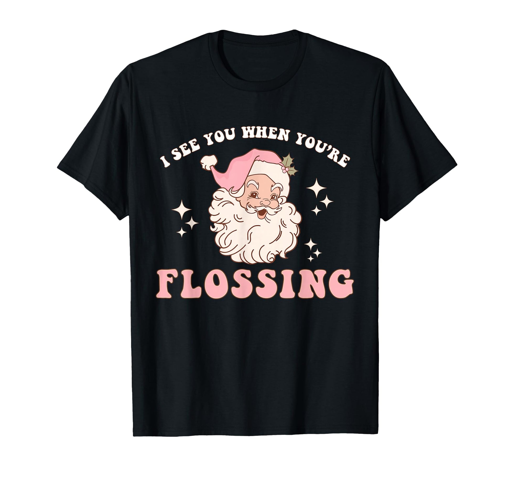 Funny Santa I See You When You're Flossing Dental Squad Xmas T-Shirt