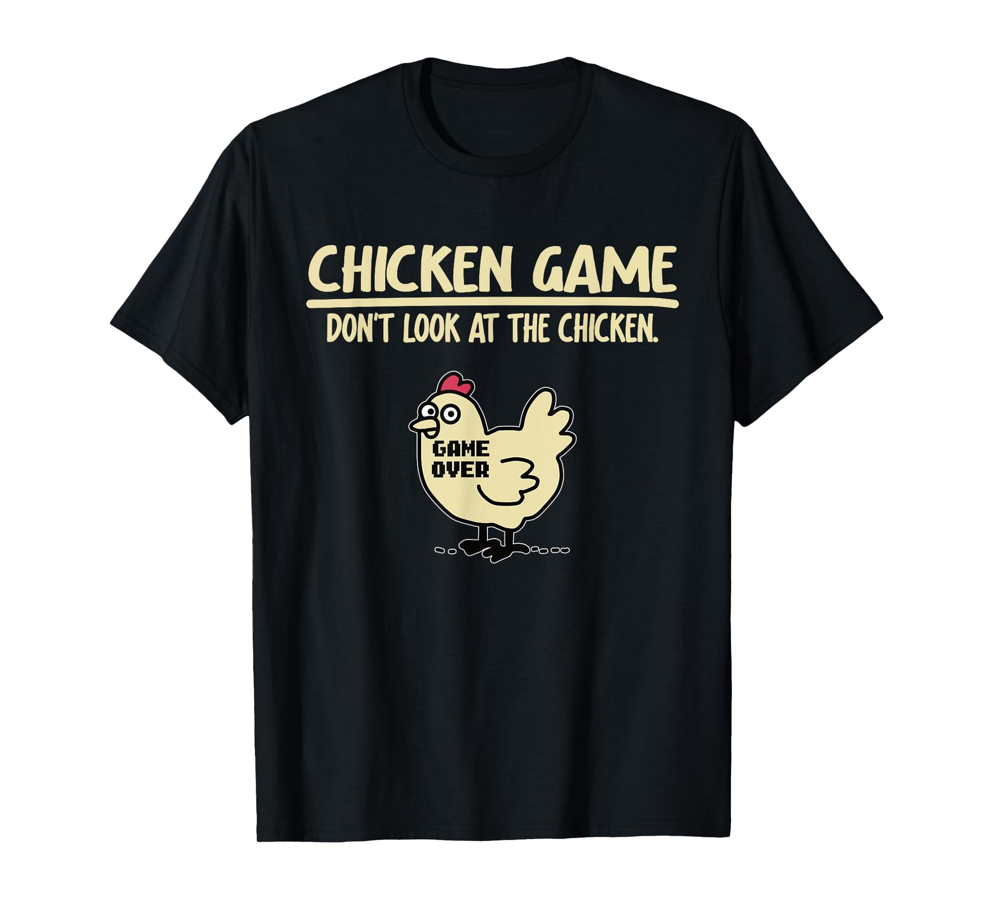 Game Over Chicken Game Funny Chicken Game - Don't Look At The Chicken Unisex Adults & Kids Black Cotton Blend T-Shirt Small
