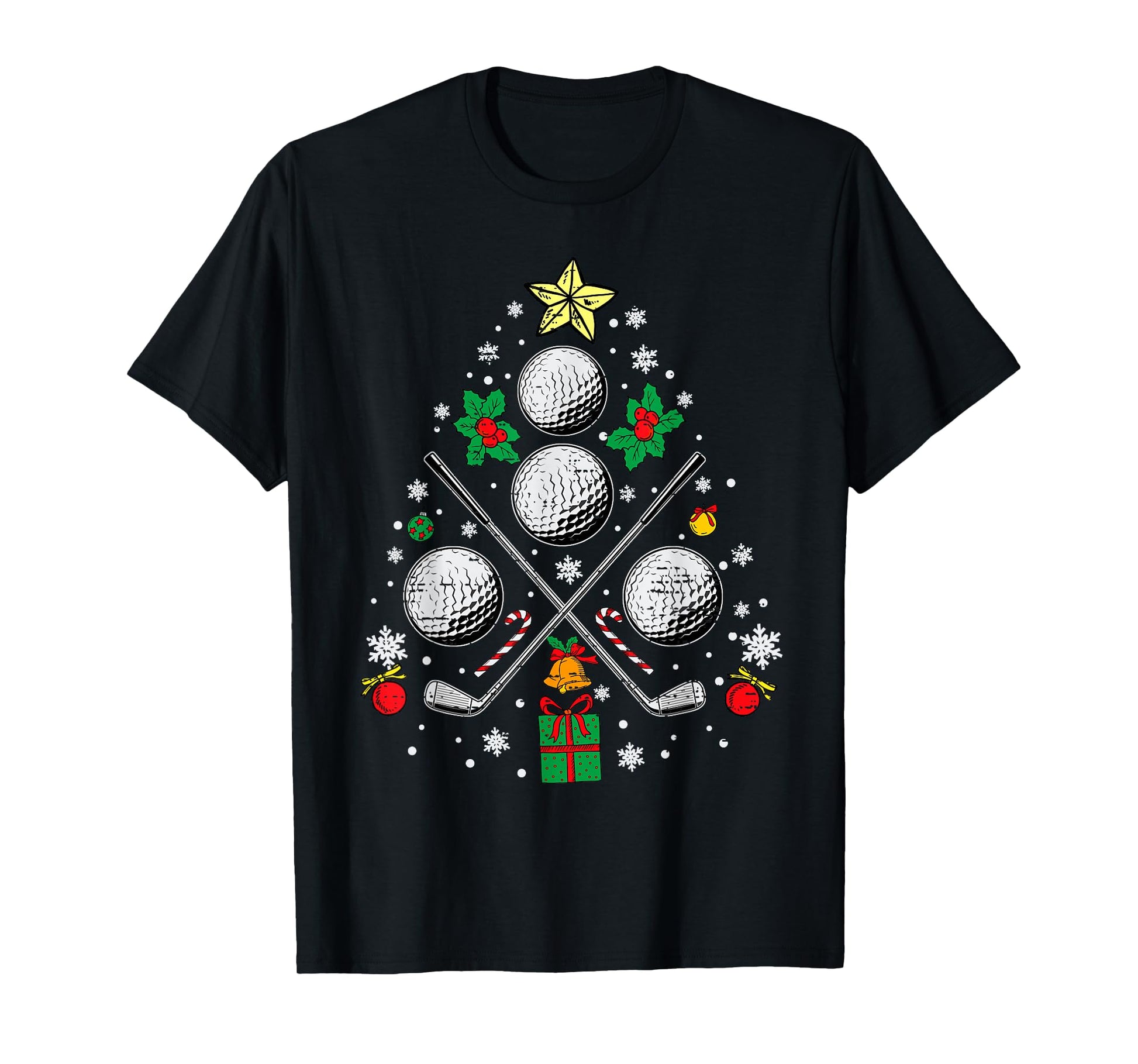 Golf Christmas Tree Light Pajama Golfer Xmas Men Women Kids T-Shirt