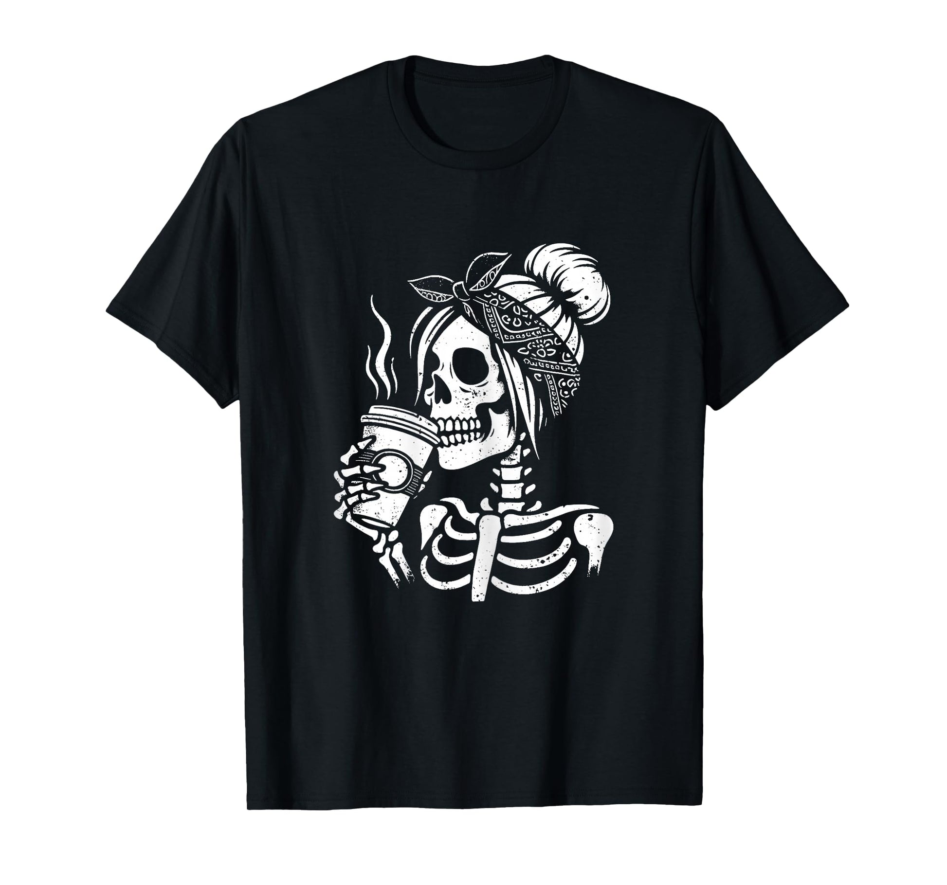 Halloween Skeleton Messy Bun Coffee Funny Costume Mom Women T-Shirt