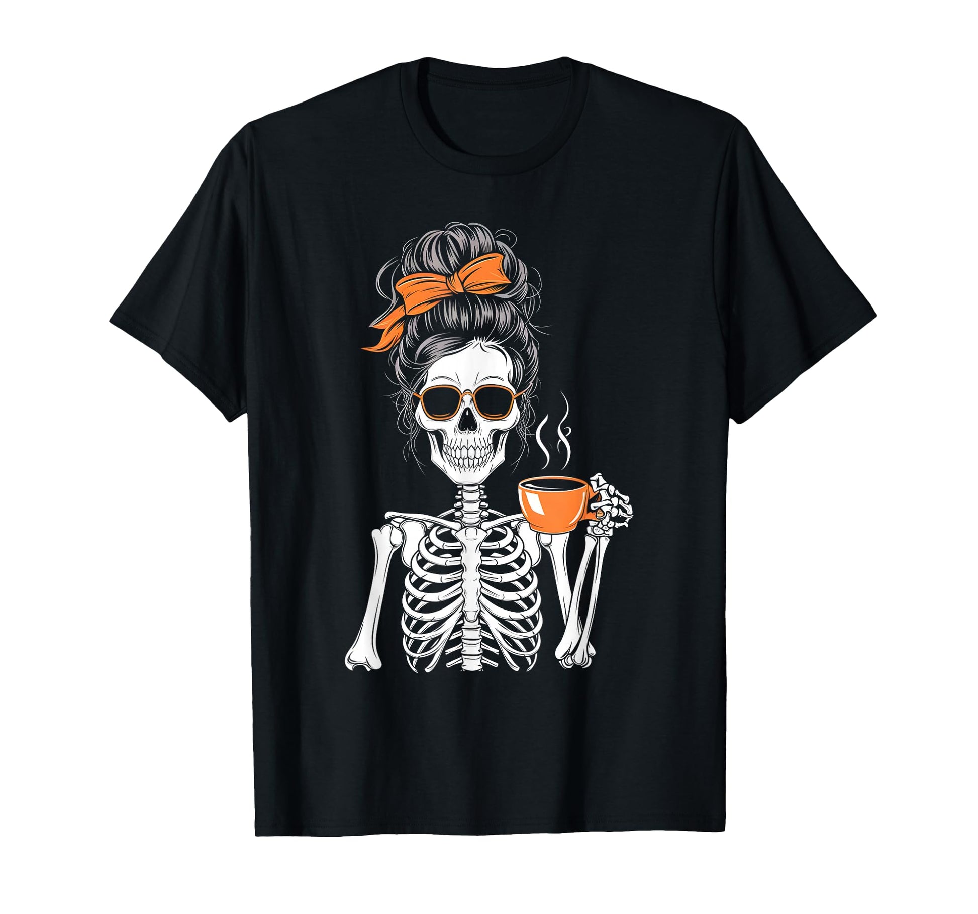 Halloween Skeleton Messy Bun Coffee Funny Costume Mom Women T-Shirt