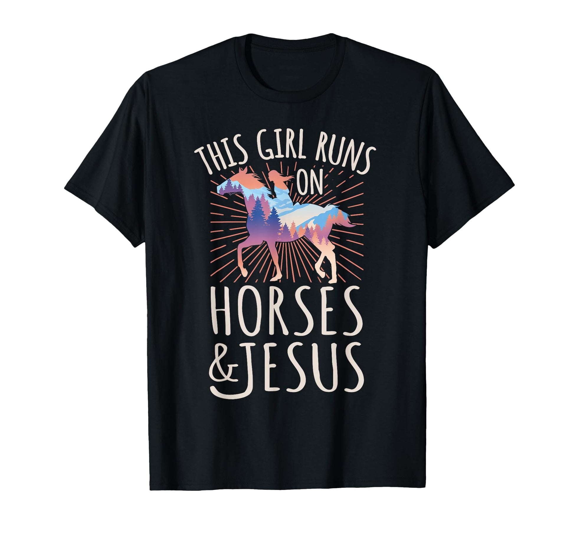 Horse Rider - This Girl Runs On Horses And Jesus T-Shirt