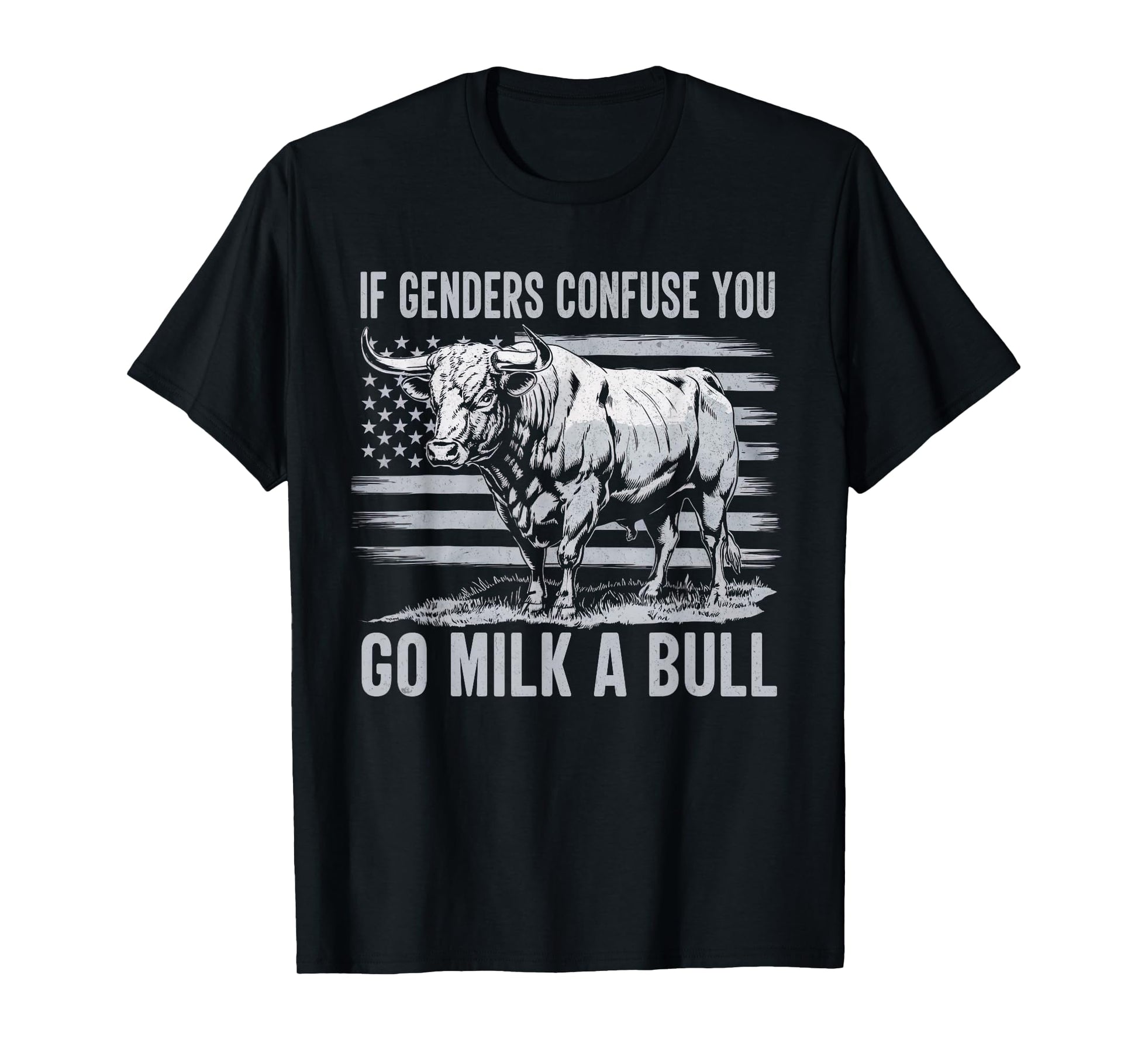 If Genders Confuse You Go Milk a Bull Vintage USA Flag T-Shirt