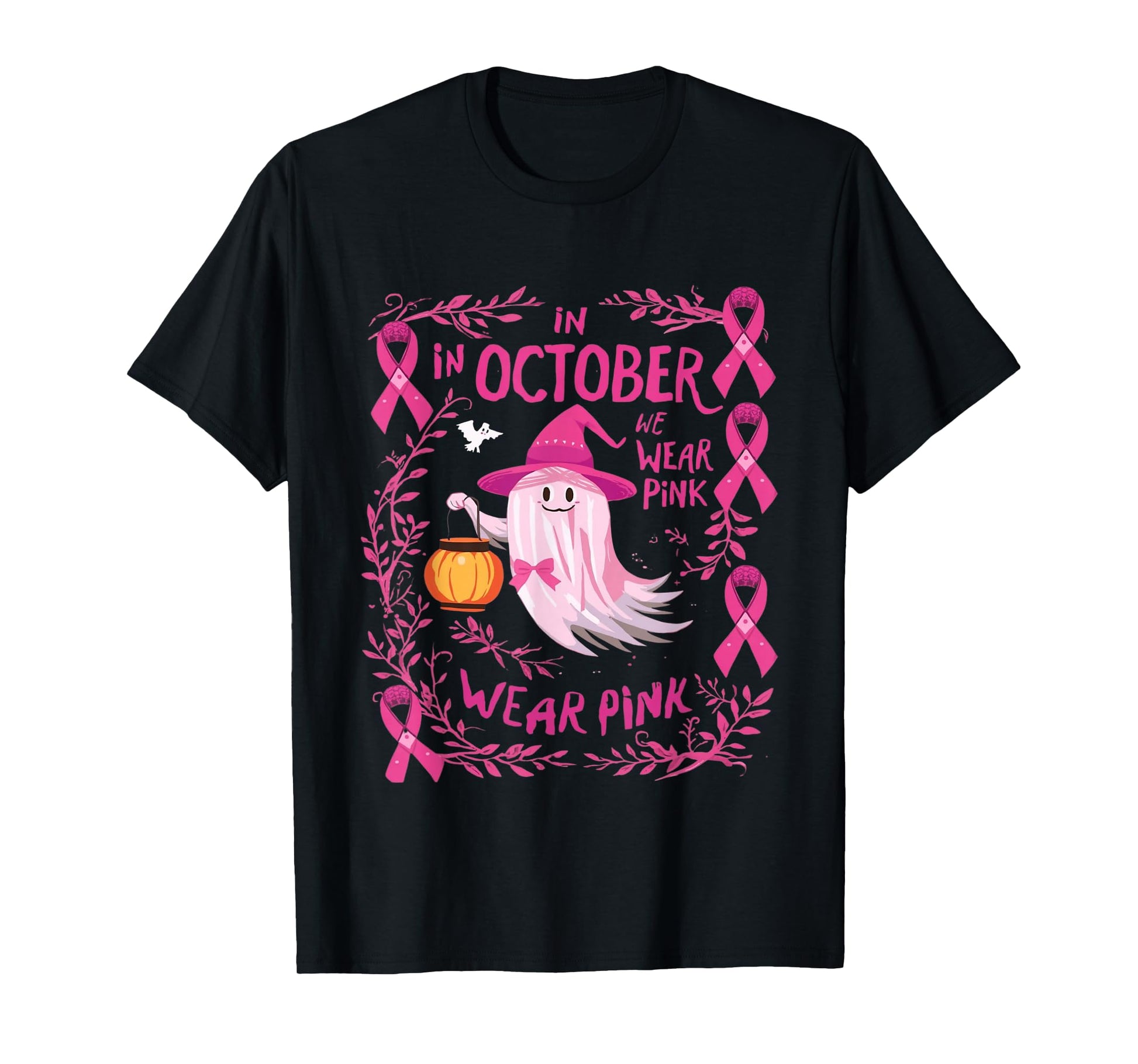 in October we wear Pink Ghost Halloween tee for Women T-Shirt