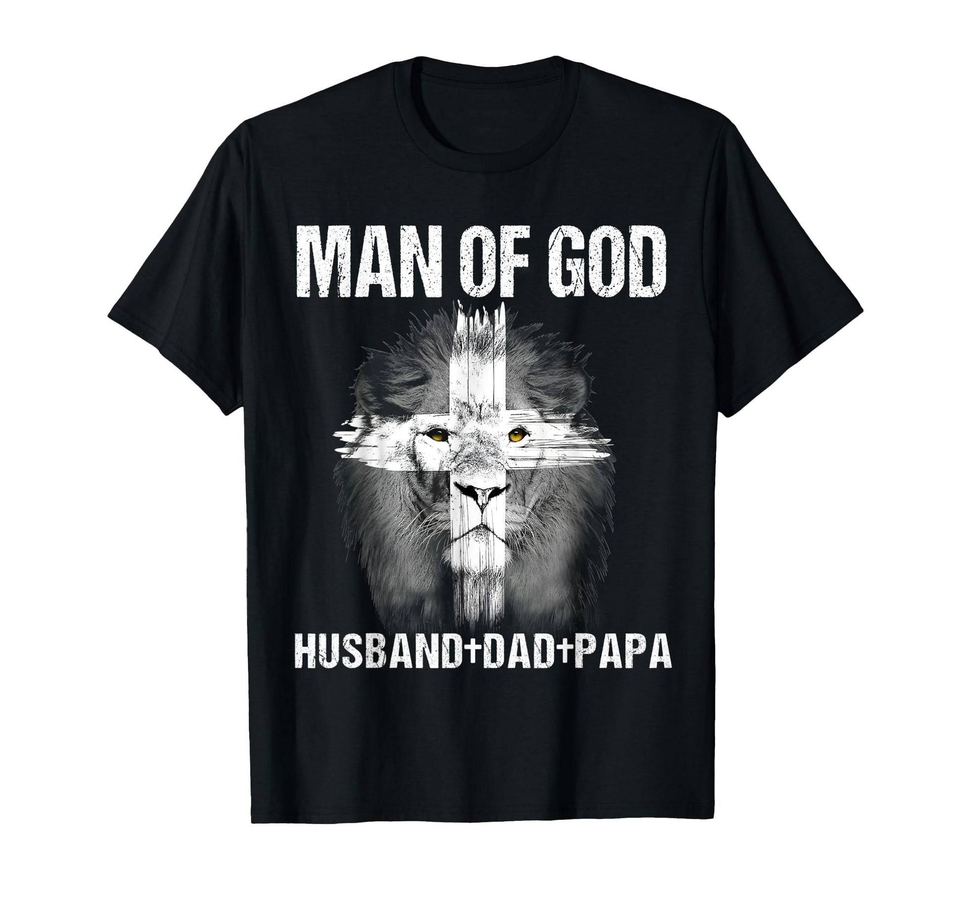Mens Man of God Husband Dad Papa Lion Cross Jesus Christian Gift T-Shirt