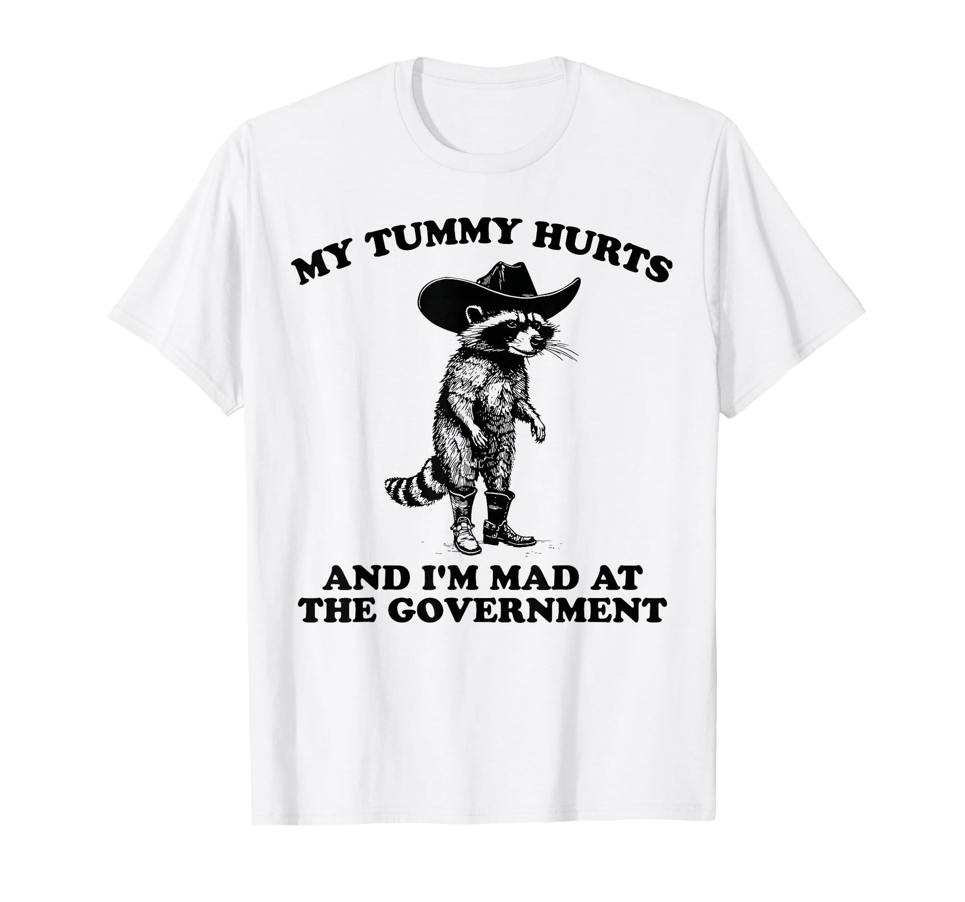 My Tummy Hurts And I'm Mad At The Government Cowboy Raccoon T-Shirt
