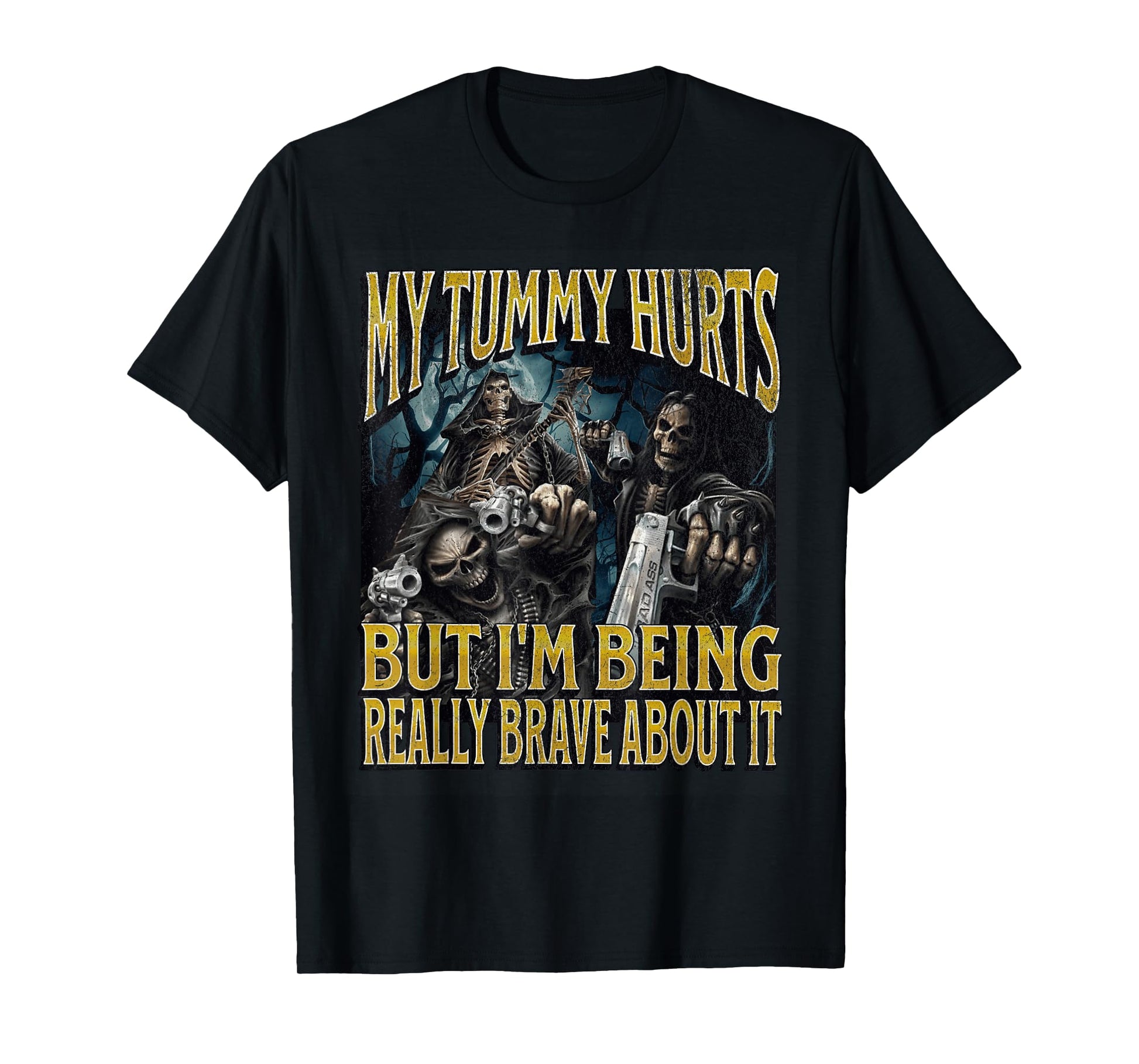 My Tummy Hurts Funny Hard Skeleton Meme Bootleg T-Shirt