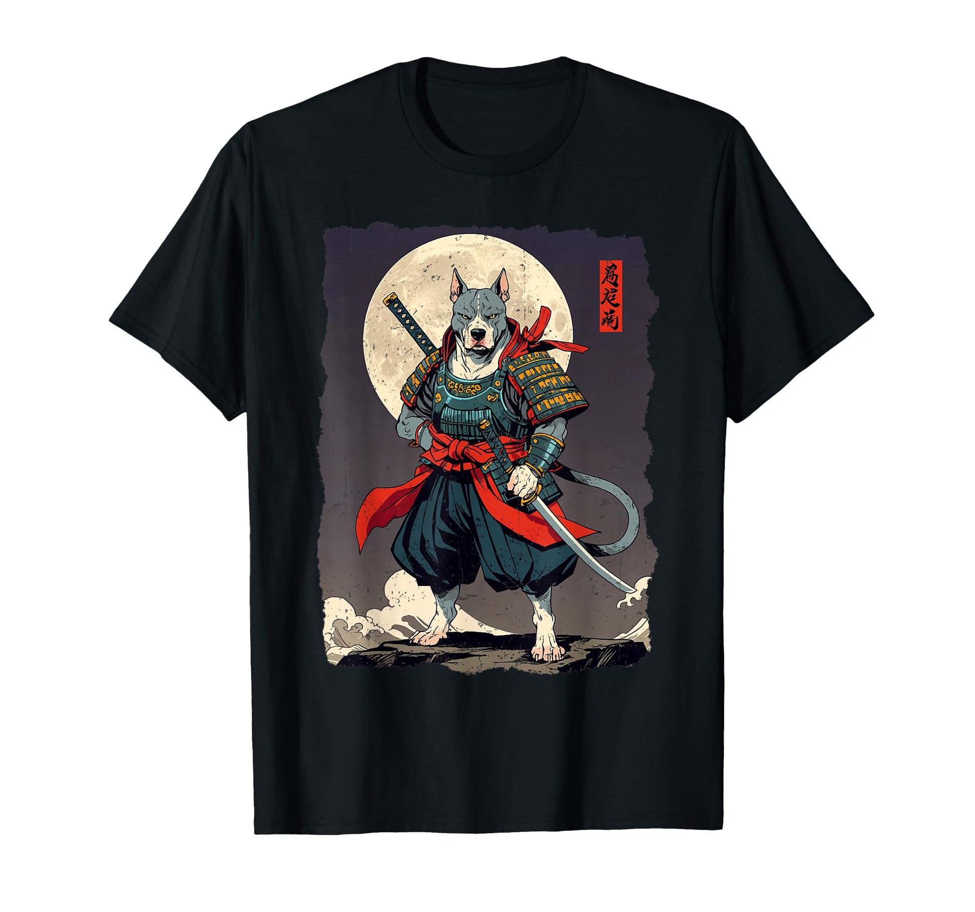 Pitbull Dog Samurai Japanese Retro Ukiyo-e Warrior T-Shirt