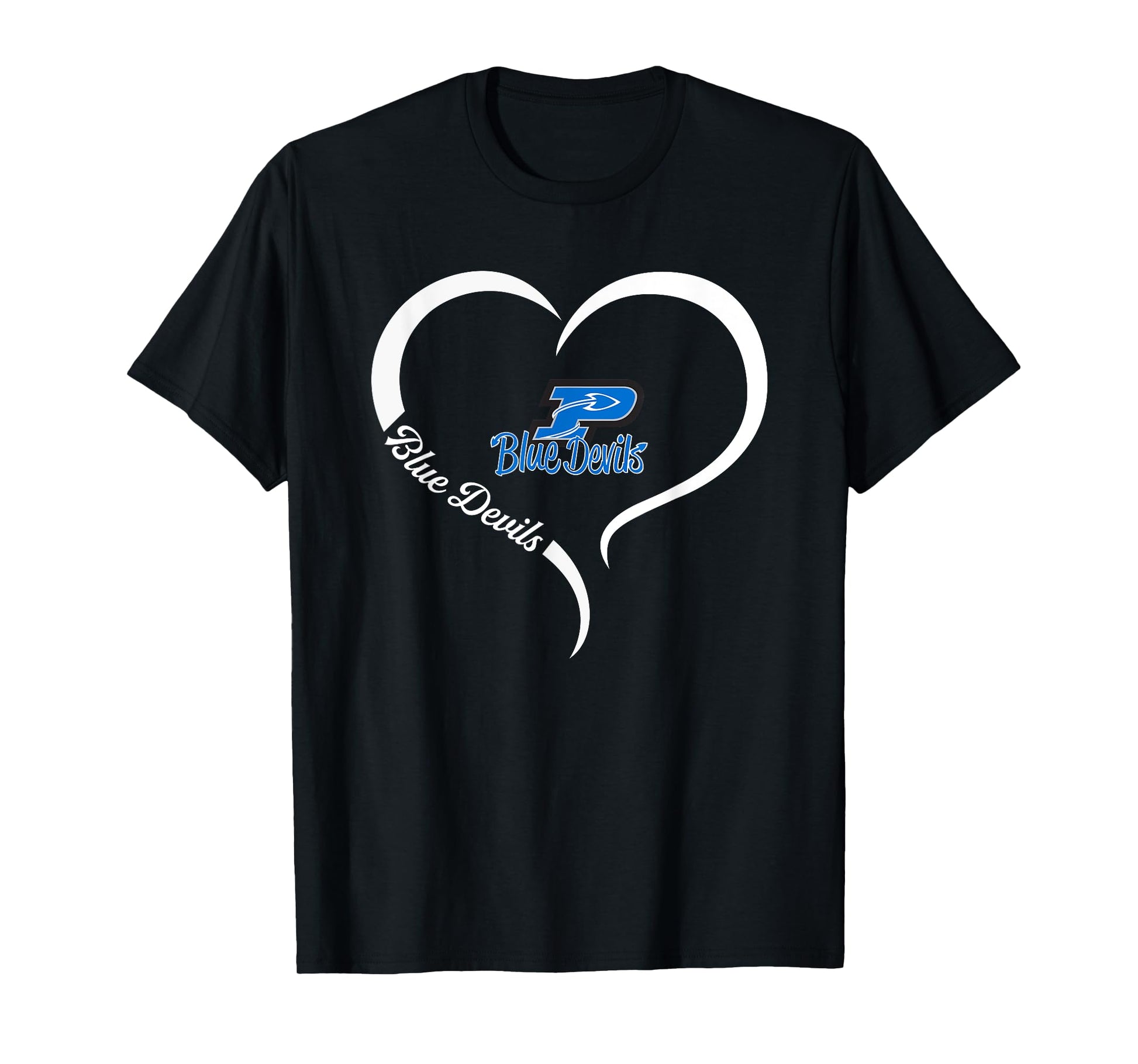 Plattsmouth Blue Devils Logo Half Heart Slogan HS T-Shirt