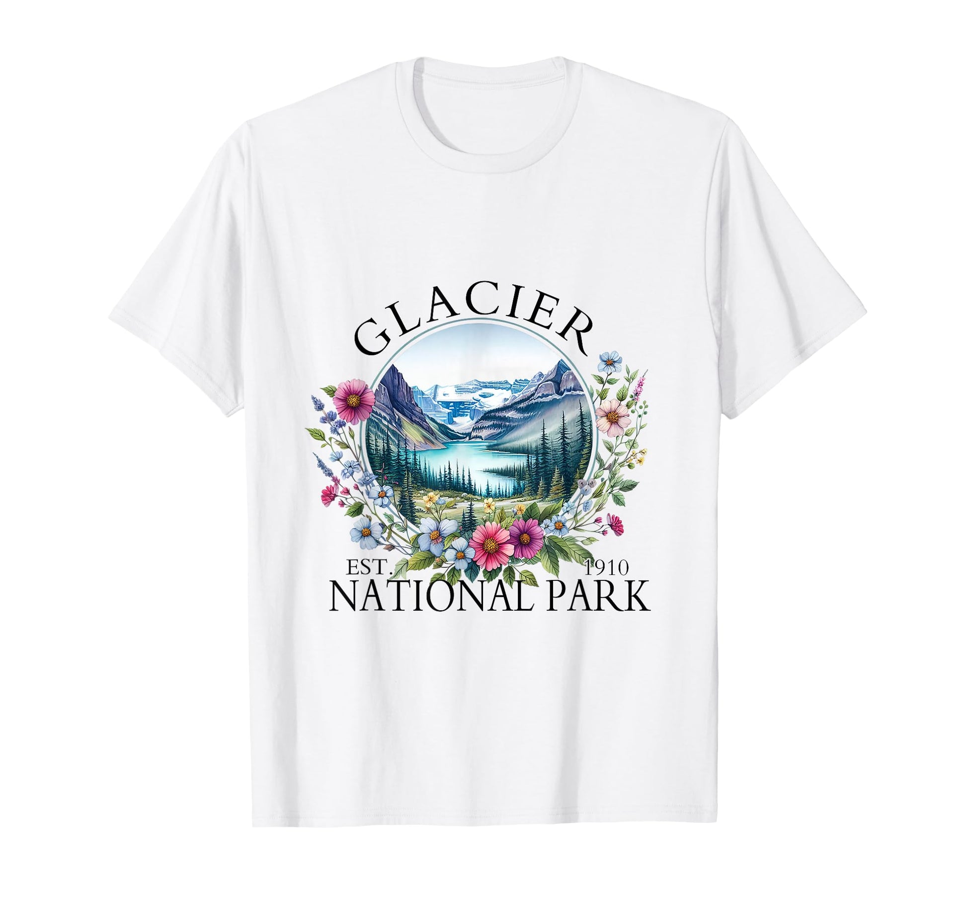 Retro Floral Glacier National Park Hiking Camping Outdoor T-Shirt