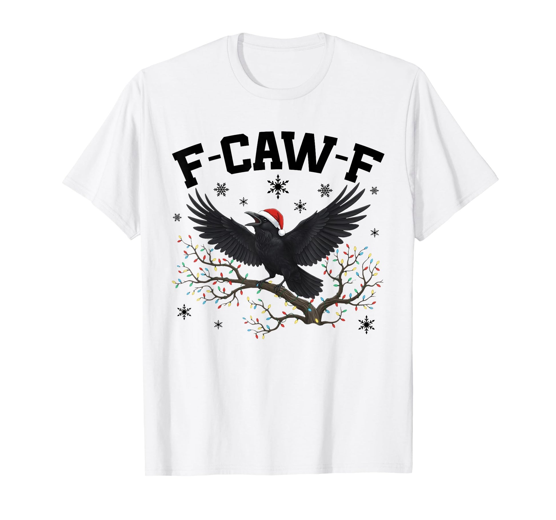 Retro Funny Black Crow F-Caw-F Christmas Lights Santa Hat T-Shirt