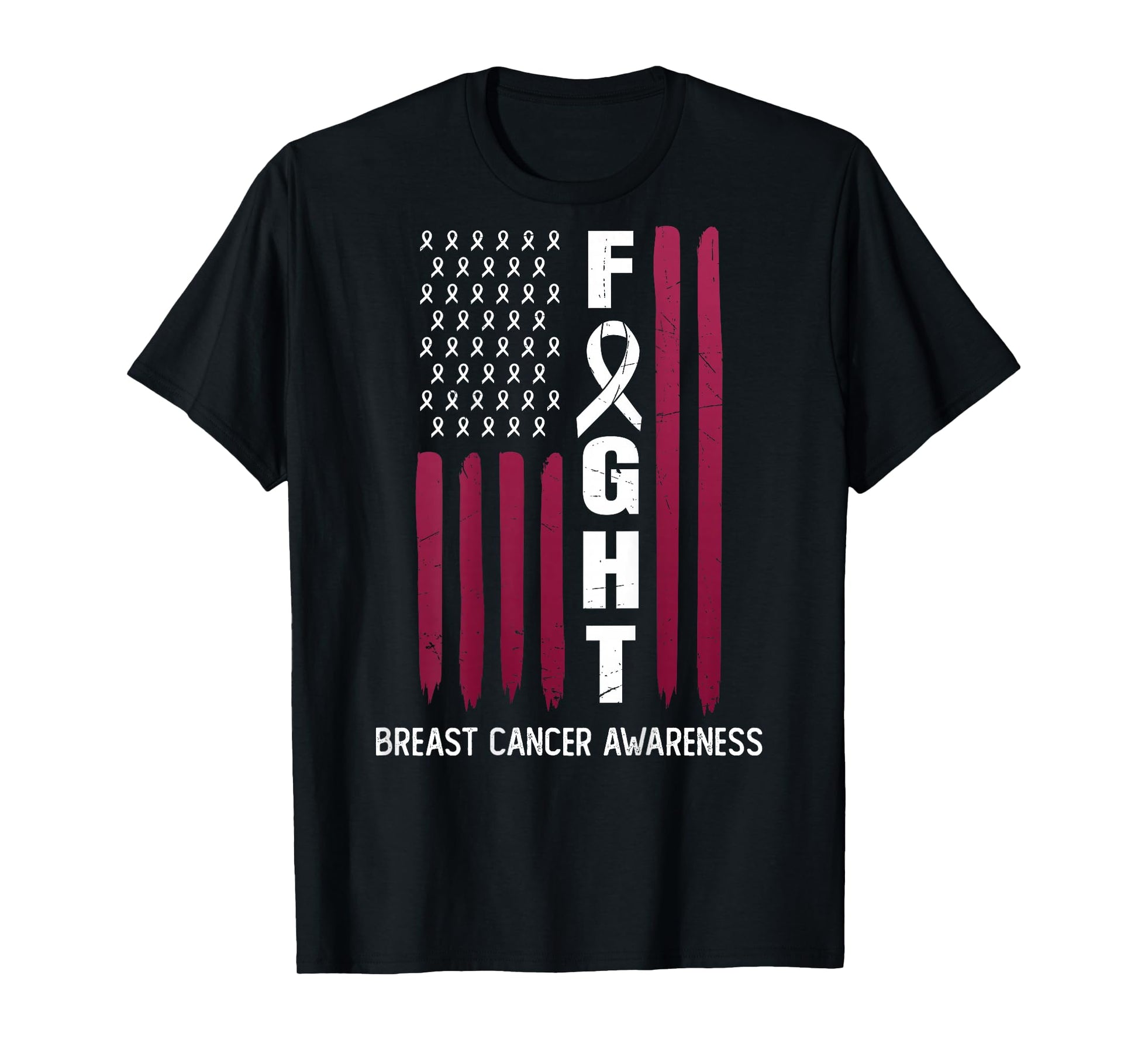 USA Pink Flag Breast Cancer Awareness Month - On Back T-Shirt