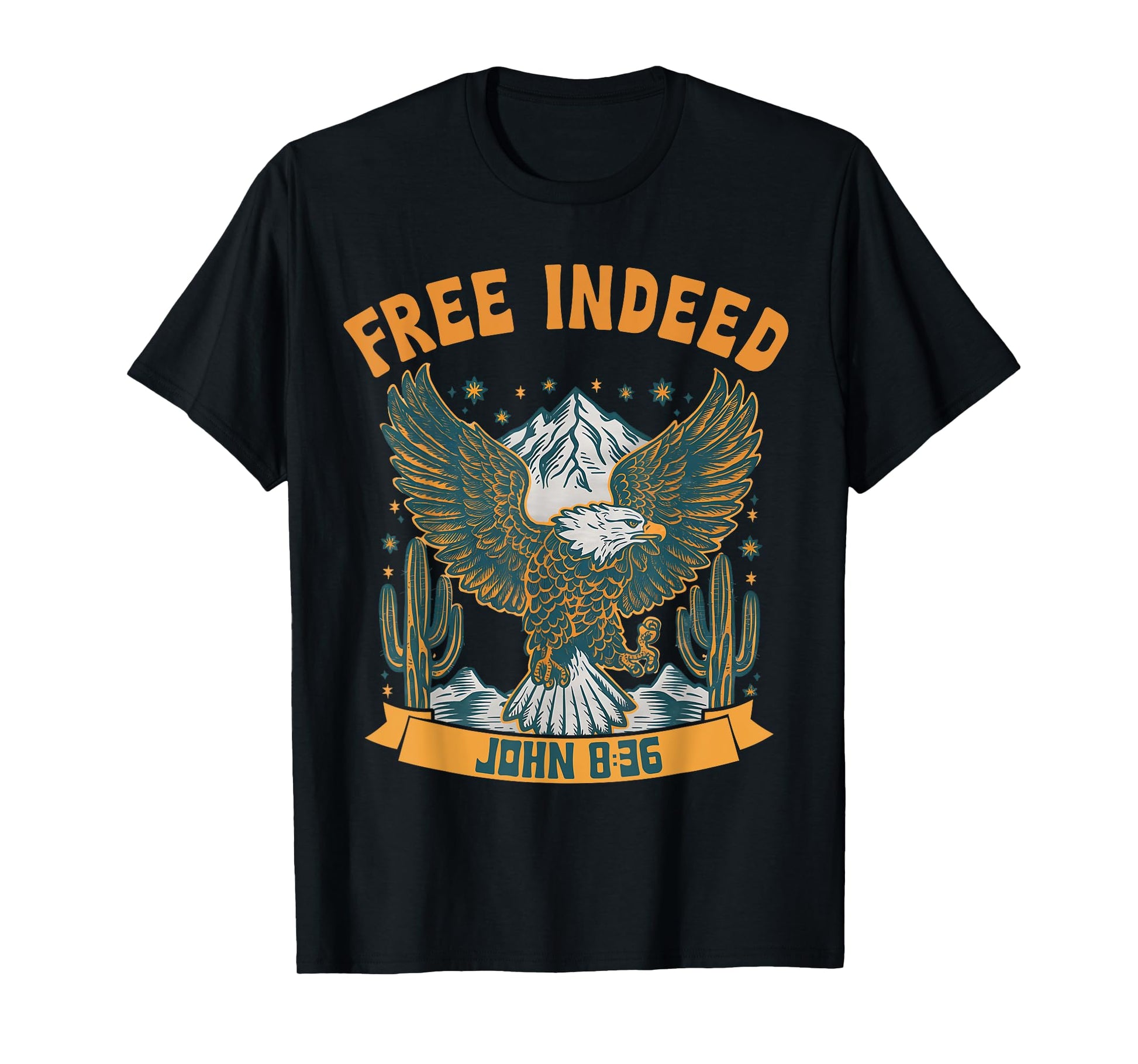 Vintage Free Indeed John 8:36 Christian Eagle Bible Prayer T-Shirt