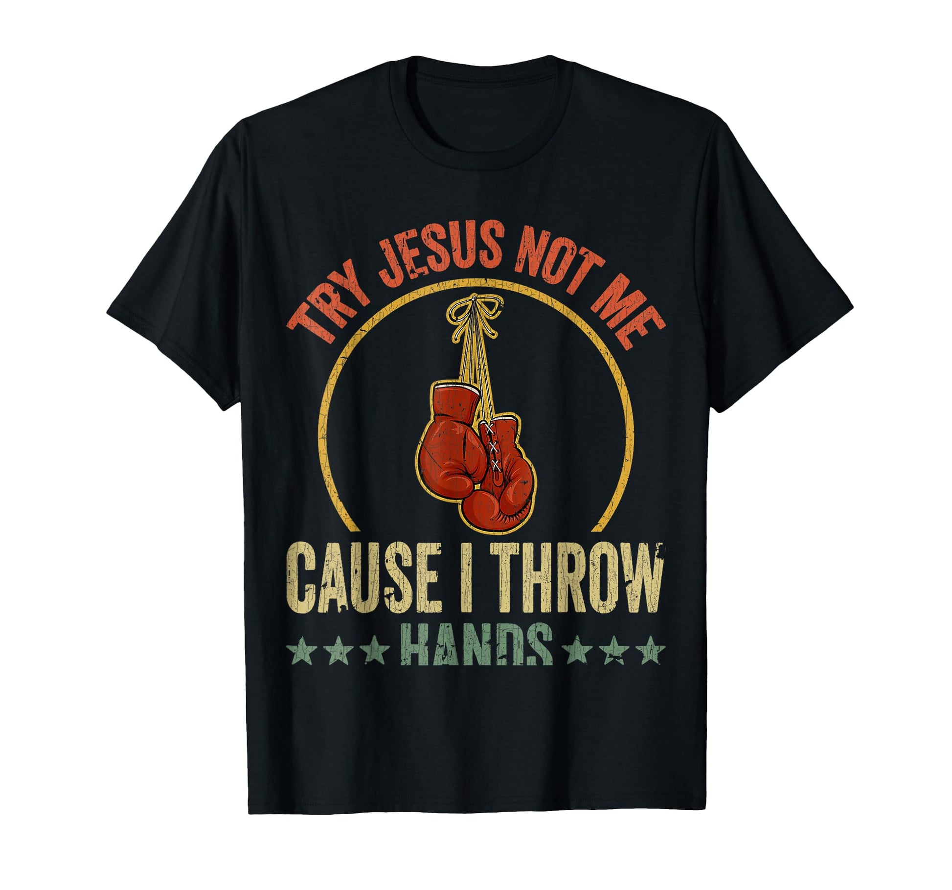 Vintage Retro Try Jesus Not Me Cause I Throw Hands Funny Box T-Shirt