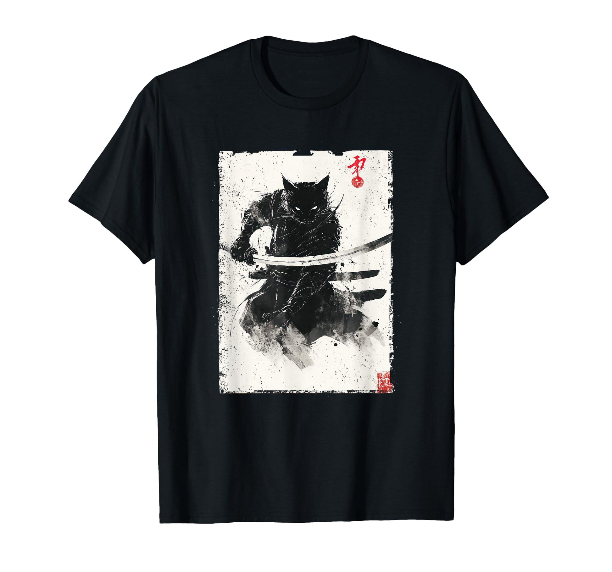 Vintage Samurai Cat Graphic Art Japanese Ukiyo-e T-Shirt