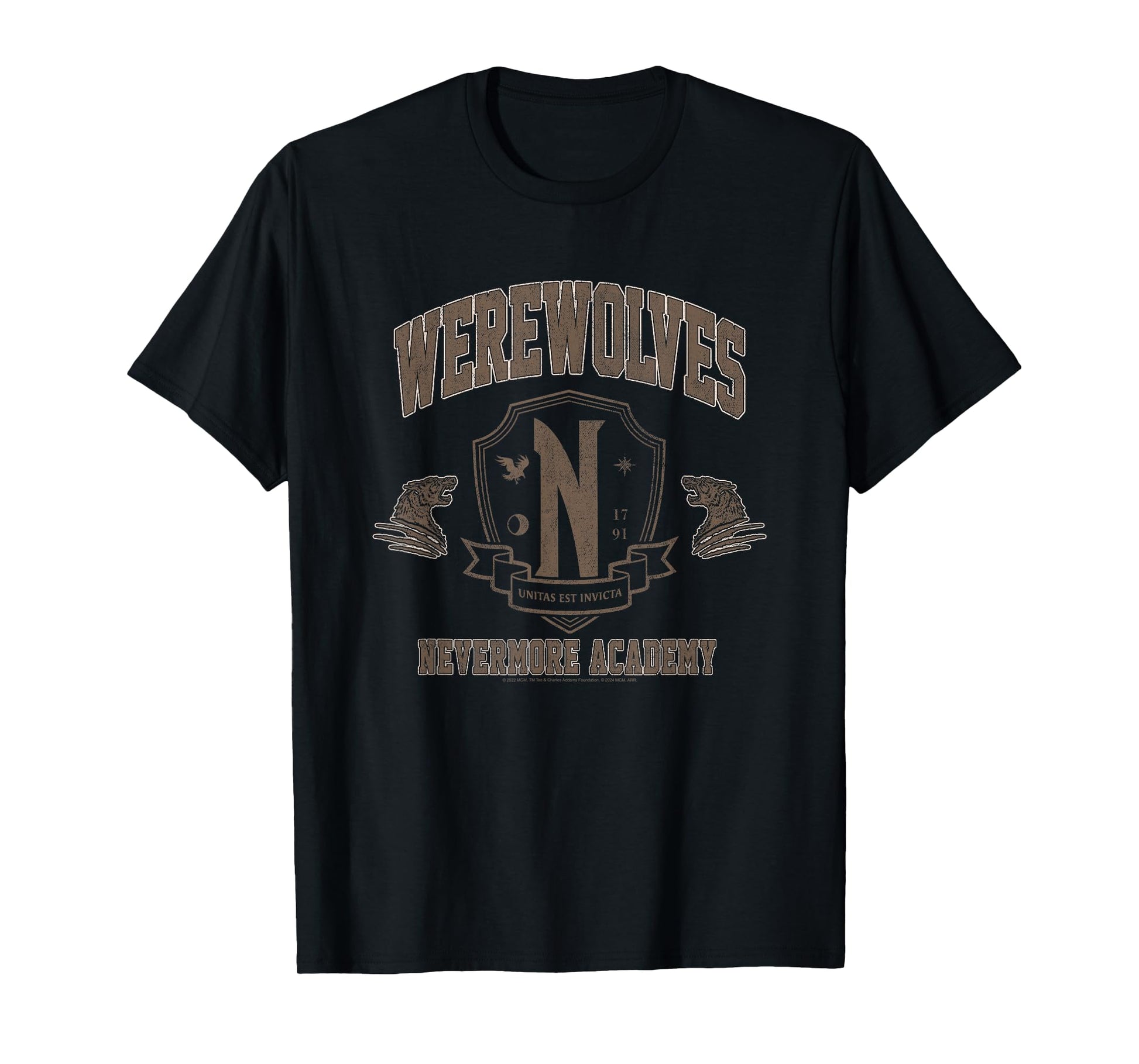 Wednesday Werewolves Nevermore Academy Distressed Chest Logo T-Shirt